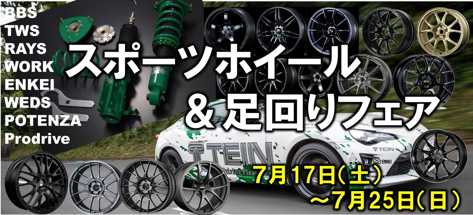 7月の17日土曜日から25日日曜日まで、各ブランドのスポーツホイールを中心に展示。