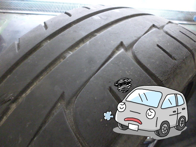 タイヤを点検させていただいたところ、減りと経年数による劣化が見られましたので、4本交換となりました。