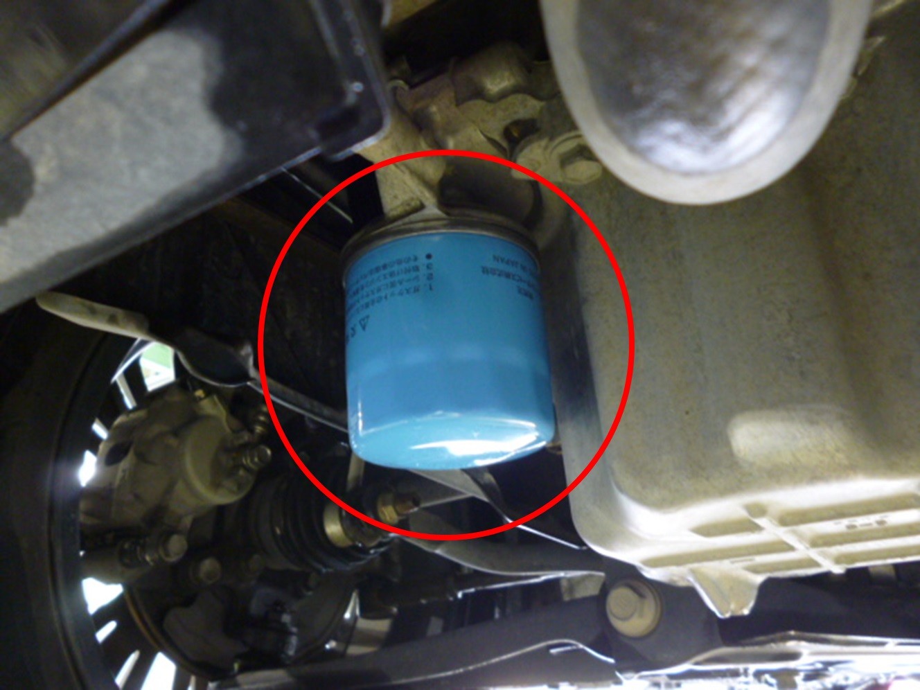 オイルエレメント(オイルフィルター)はエンジン下部にあります。