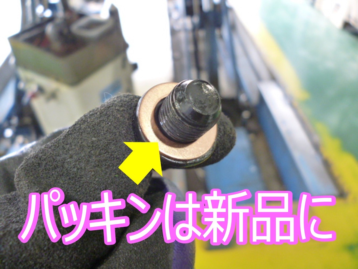 ボルトを戻す際にパッキンは新品へ交換し、トルクレンチを使って適正なチカラで締め付けします。