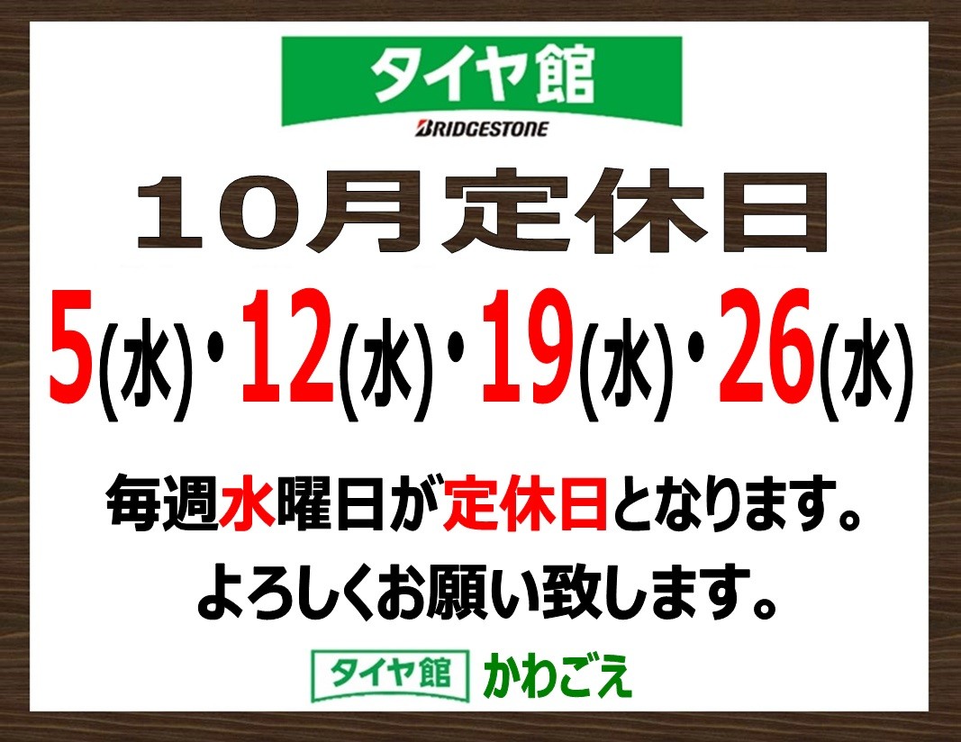 〜【本日定休日】10月12日(水)〜