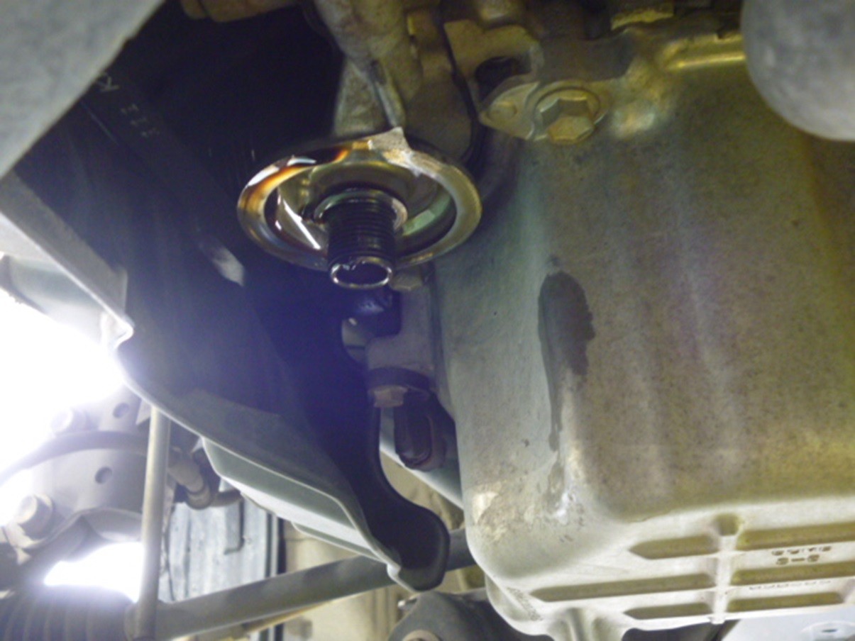 今回のエンジンオイル交換はドレンボルトを取り外して下抜きしました。