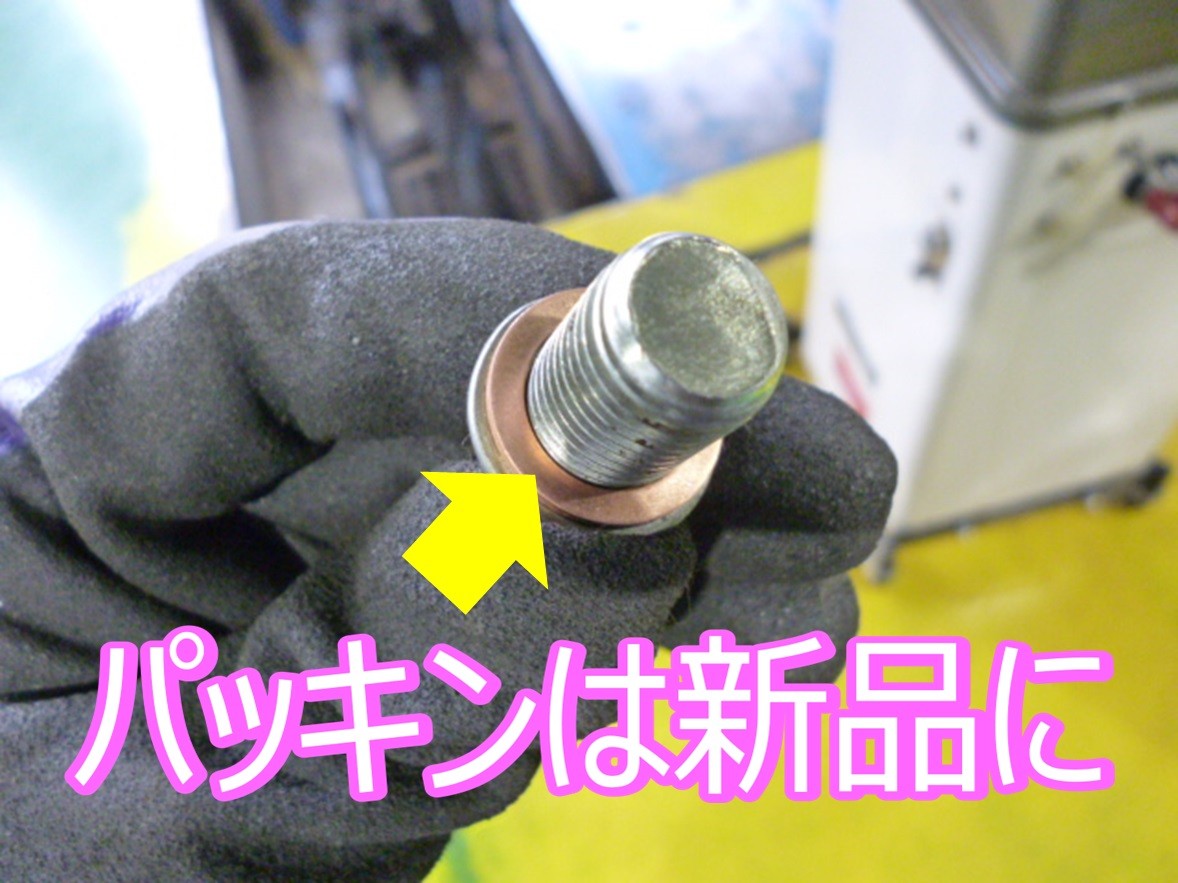 ボルトを戻す際にパッキンは新品へ交換し、トルクレンチを使って適正なチカラで締め付けします。