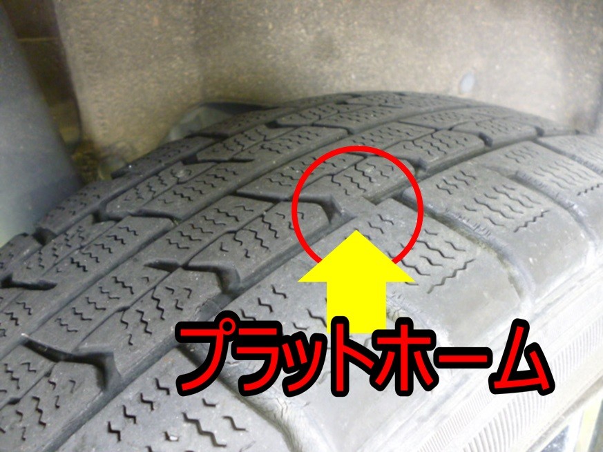去年から履きつぶしで履いていたのでプラットホーム(スタッドレスタイヤの限界値)が出ていました。