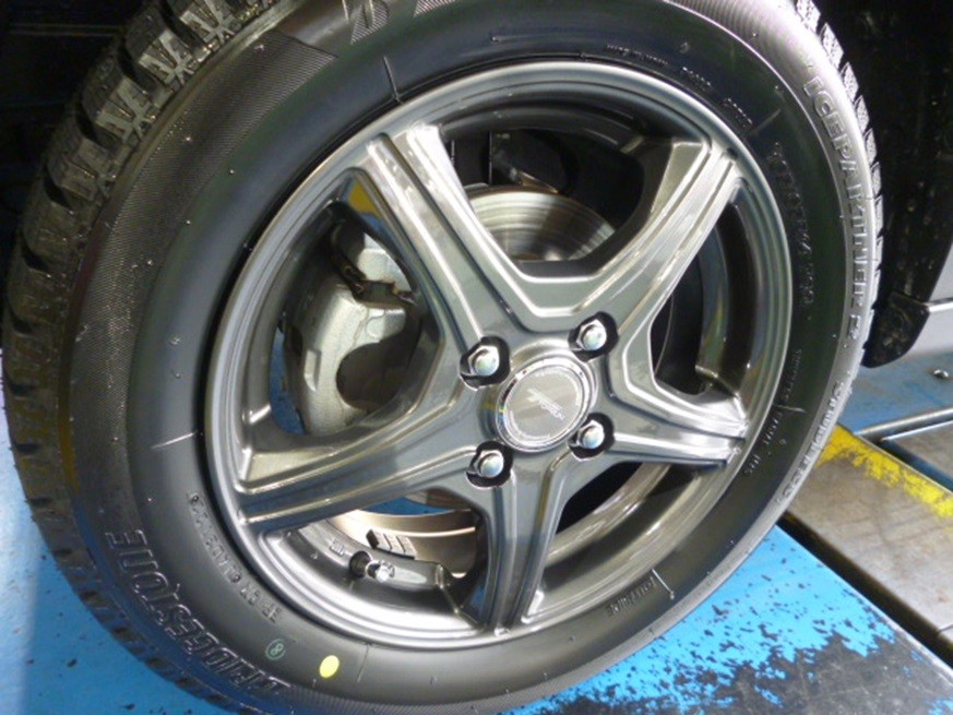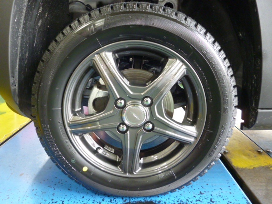 純正は15インチスチールホイールでした。スタッドレスは1インチダウンの14インチでお取り付けとなりました。