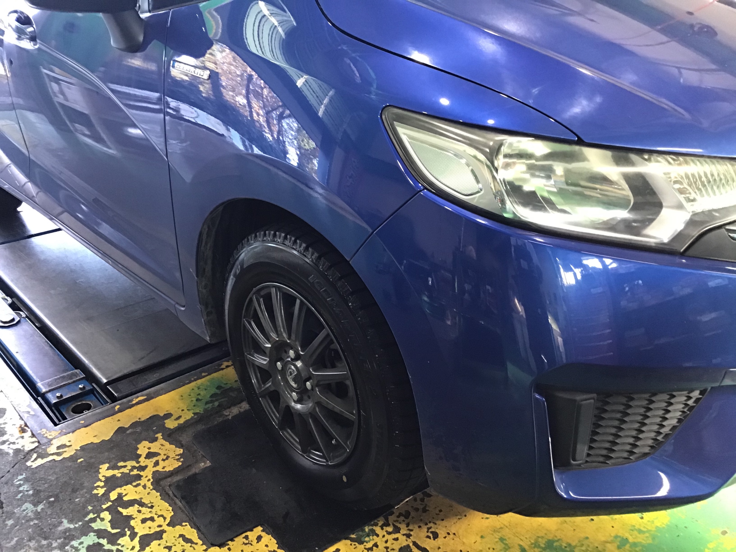 ホンダ『フィット』のスタッドレスタイヤ(冬用タイヤ)交換いたしました。