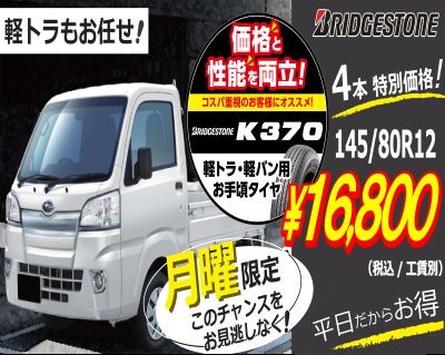只今、タイヤ館かわごえ店では毎週月曜日限定で