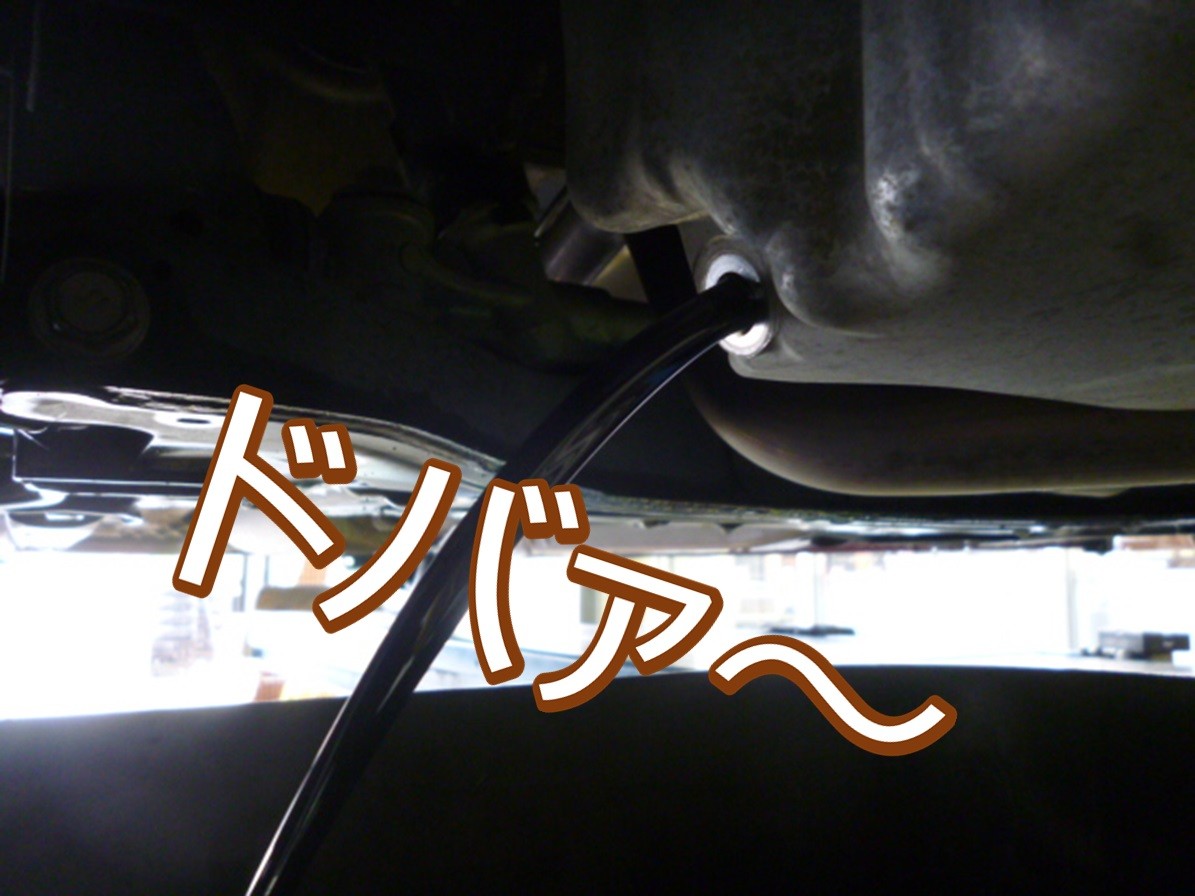 今回のエンジンオイル交換はドレンボルトを取り外して下抜きしました。