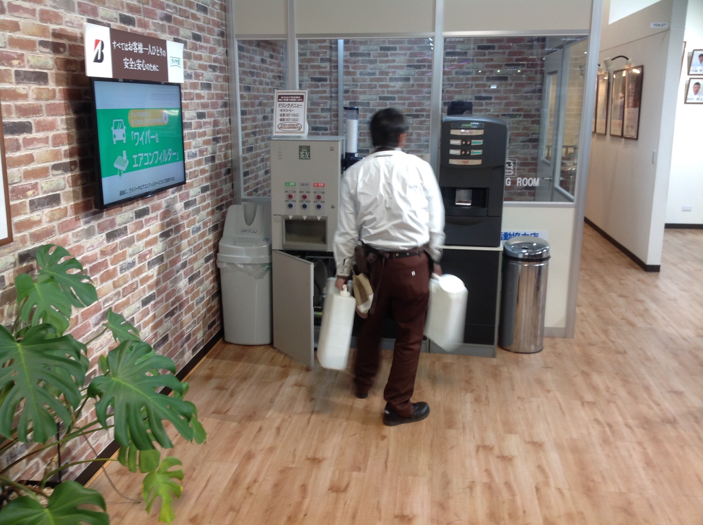 店内掃除! ポスト 2019年2月3日 毎日、営業時間を過ぎるとコーヒー、お茶の機械のメンテナンスを行っています! 今日は水を運ぶ加藤スタッフを隠し撮りしちゃいました(笑) そして店内もモップでの掃除、掃除機で細かい埃もしっかり取り除いています。 今日も畑中スタッフがダッシュで掃除を行っておりました。 タイヤ交換、オイル交換、バッテリー交換のご相談もお気軽にお問い合わせください。 担当:青木