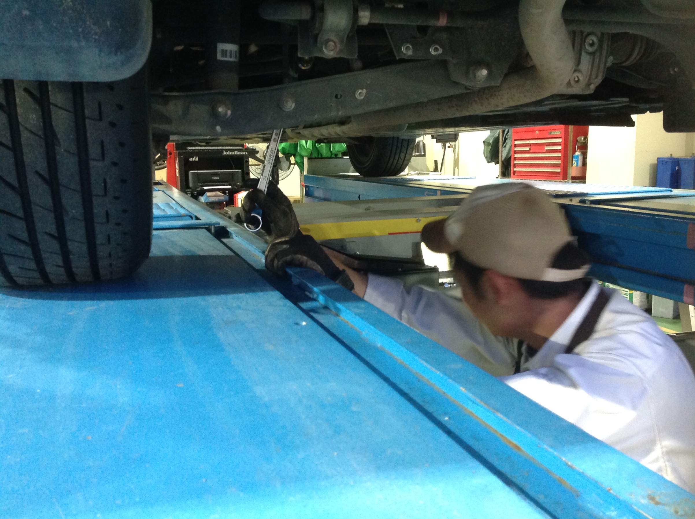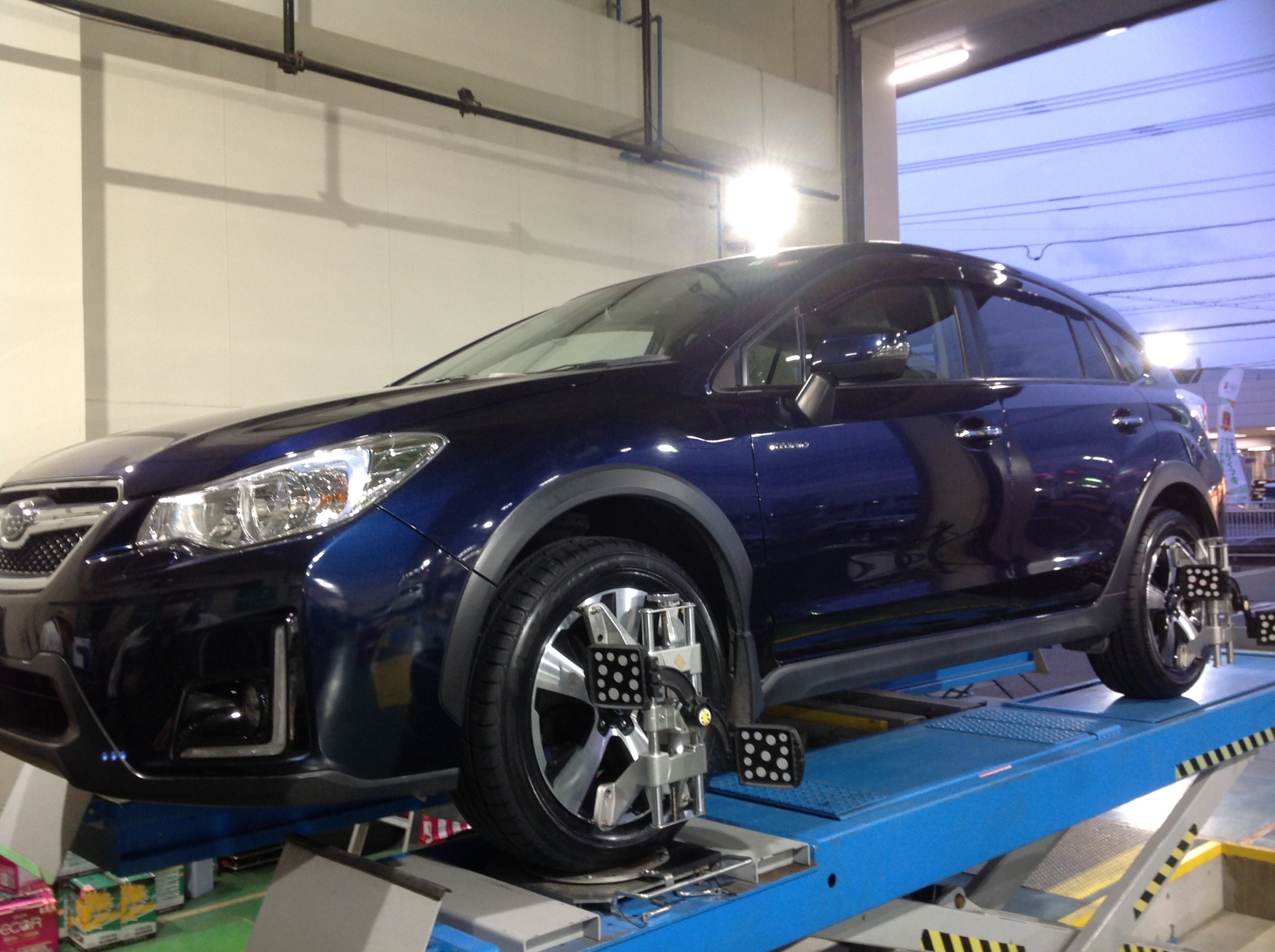 アライメント調整 ポスト 2019年3月10日 こんにちは。 スタッフ日記をみていただきありがとうございます。 本日はスバルのXVのアライメント調整をしました。 こちらがタイヤの角度を測ってくれるための機械になります。 今回はタイヤが外側を向いていましたので、しっかりとまっすぐに調整させていただきました! 気になりましたらお気軽にご相談ください。 お待ちしております! 担当:畑中