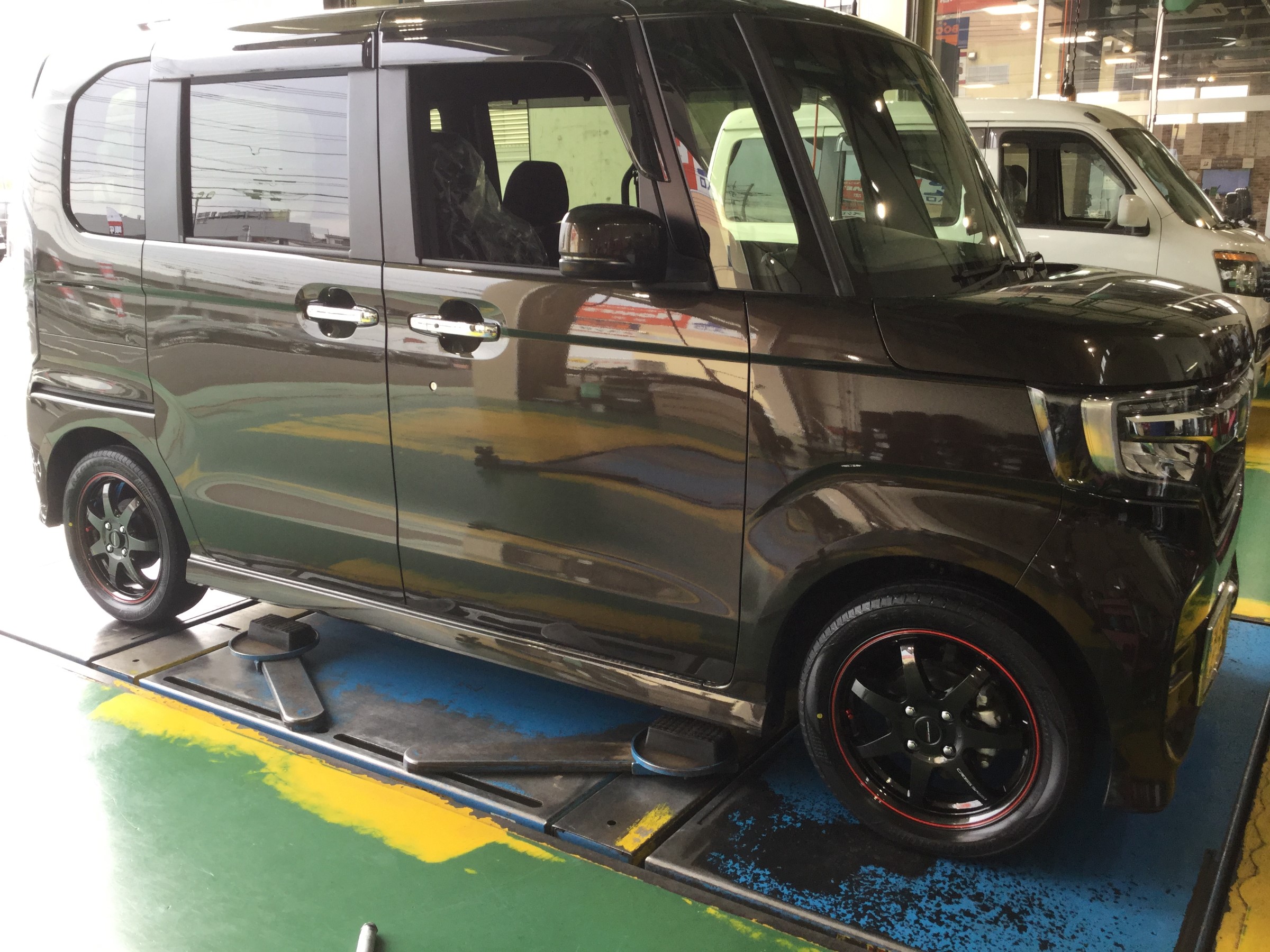 本日、N-BOXにタイヤホイールセットをお取り付けいたしました。