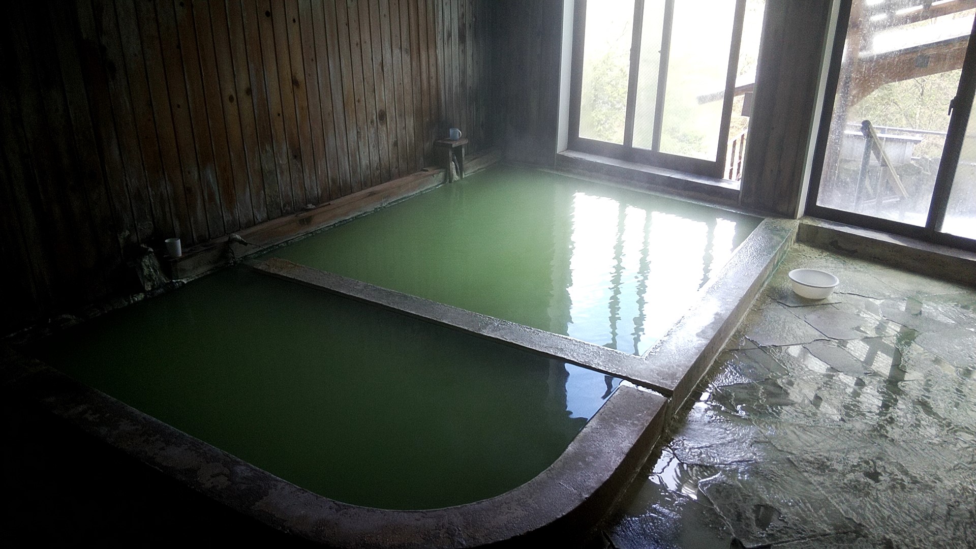 那須塩原 大出館 ポスト 2019年5月7日 那須塩原の大出館に行きました。 こちらは携帯電話は一応繋がる場所となっています。 こちらの名物は黒湯なのですがあいにくお湯の入れ替え中でした。 なので露天風呂と内湯の紹介です。 緑に見える温泉ですが、タオルを浸すと真っ黒に なってしまう不思議な温泉です。 内湯も中々の広さの湯船でくつろげます。 硫黄の香りが漂う気持ちのいい温泉でした。
