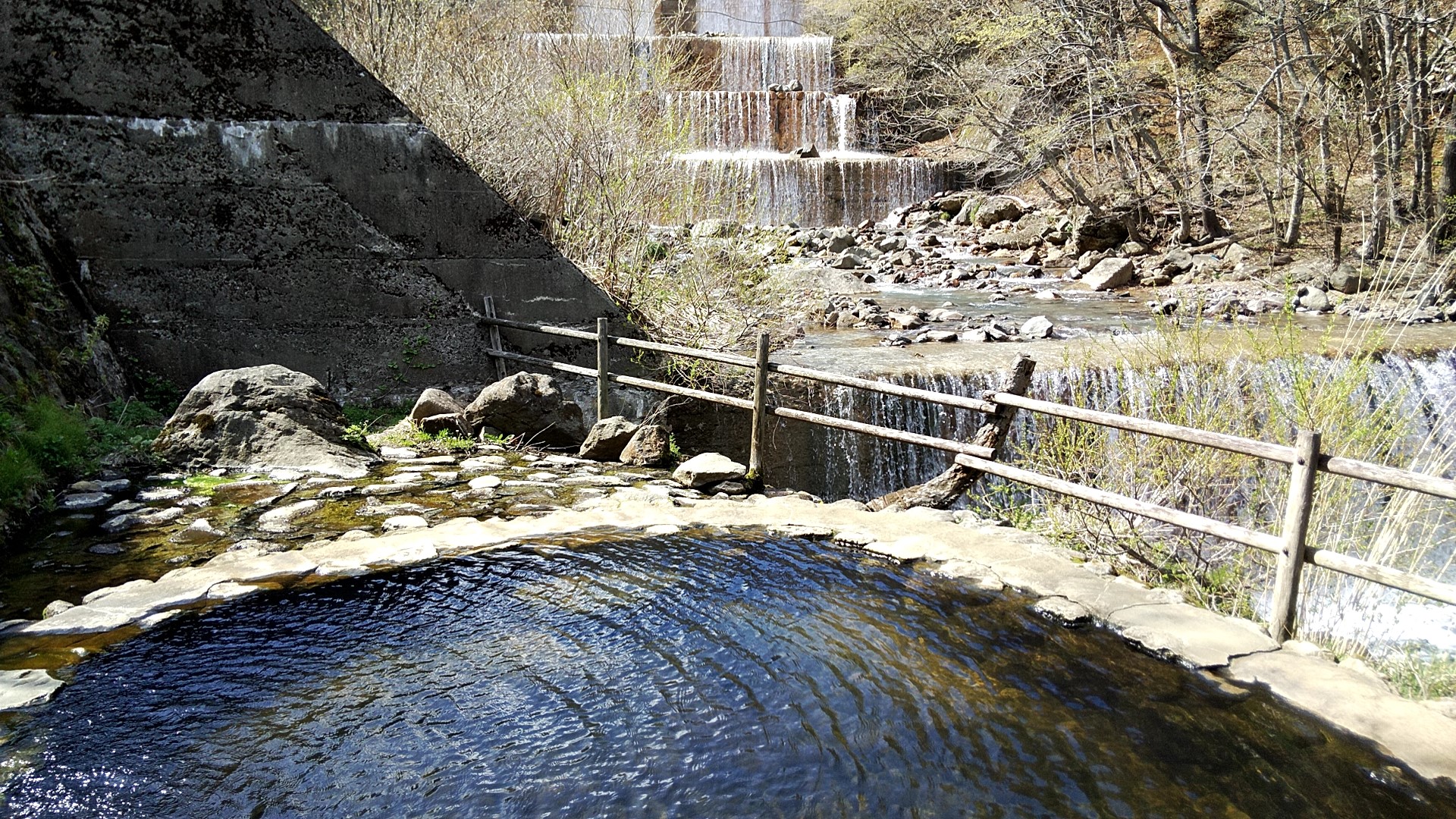 本来は熱くて仕方のない湯なのですが、少しぬるめてあり