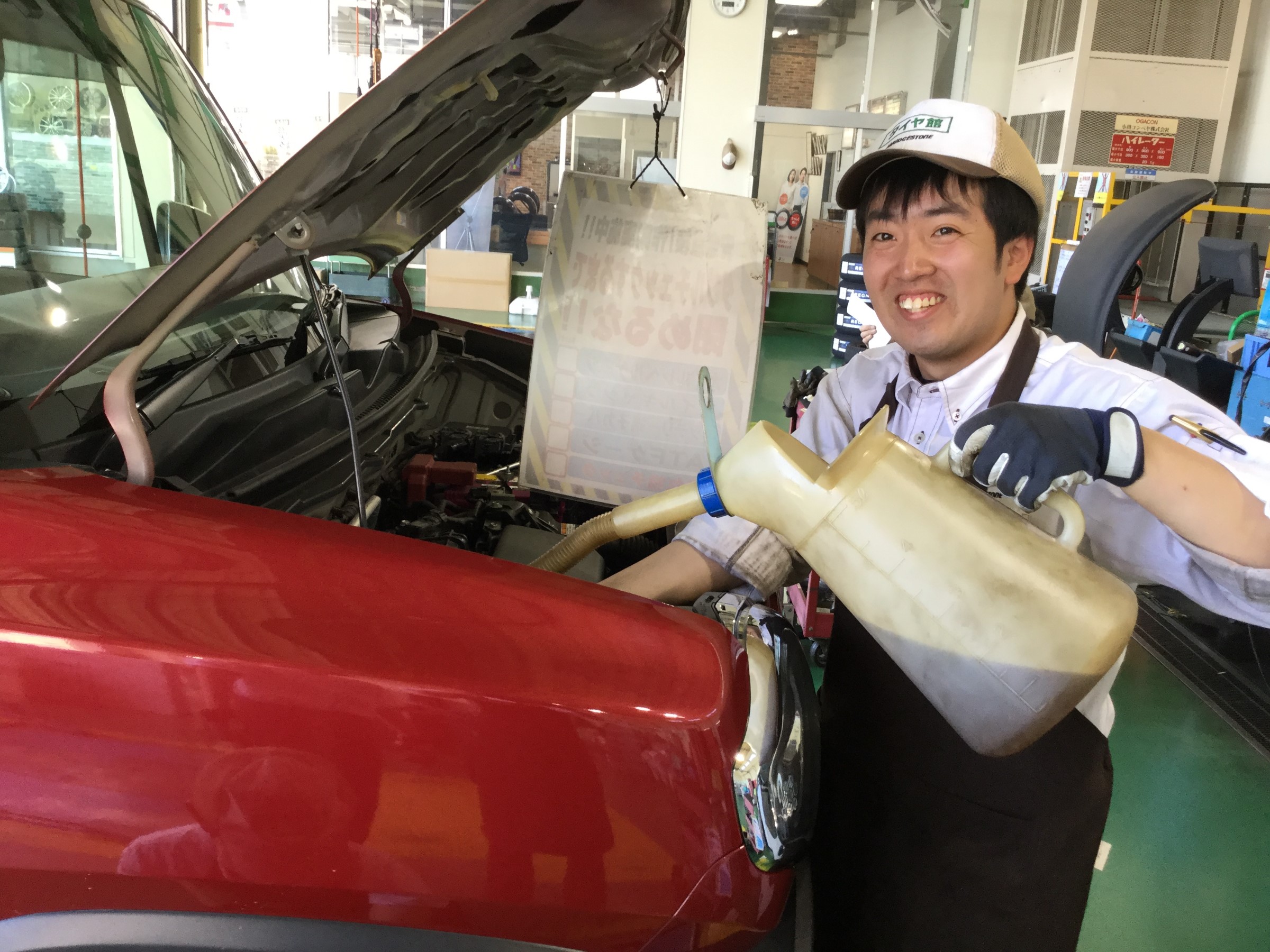 岸スタッフのオイル交換!! ポスト 2019年5月23日 こんにちは。 スタッフ日記を見て頂きありがとうございます。 本日は今月からタイヤ館かわごえに来た岸スタッフがハスラーのオイル交換をしていました。 いい笑顔ですね♪ この後はしっかりと先輩スタッフの方たちが確認をして作業完了しました! オイル交換最近していない方はぜひ当店での交換お待ちしております。 担当:畑中