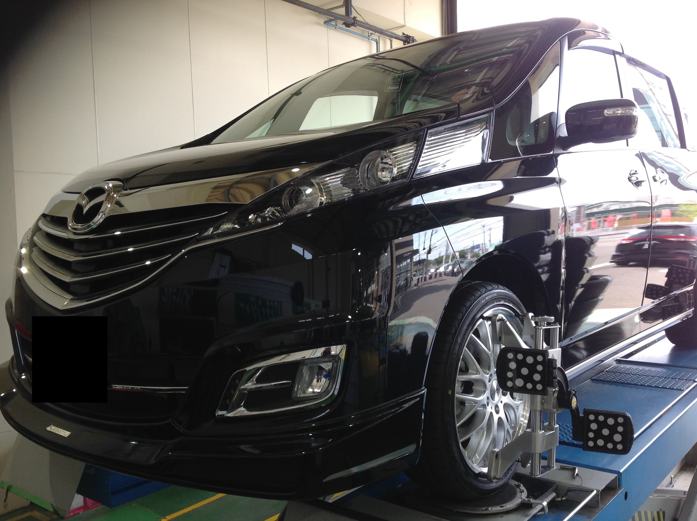 アルミホイールセット装着です! ポスト 2019年5月28日 マツダ ビアンテに18インチへインチアップした アルミホイールセットの取付けを行いましたよ~ 今回は元の16インチホイールより2インチアップしました~ 16インチの画像は取り忘れてしまいました・・・。 装着後はアライメント作業で4輪バッチリ調整しちゃいました♪ 担当:青木