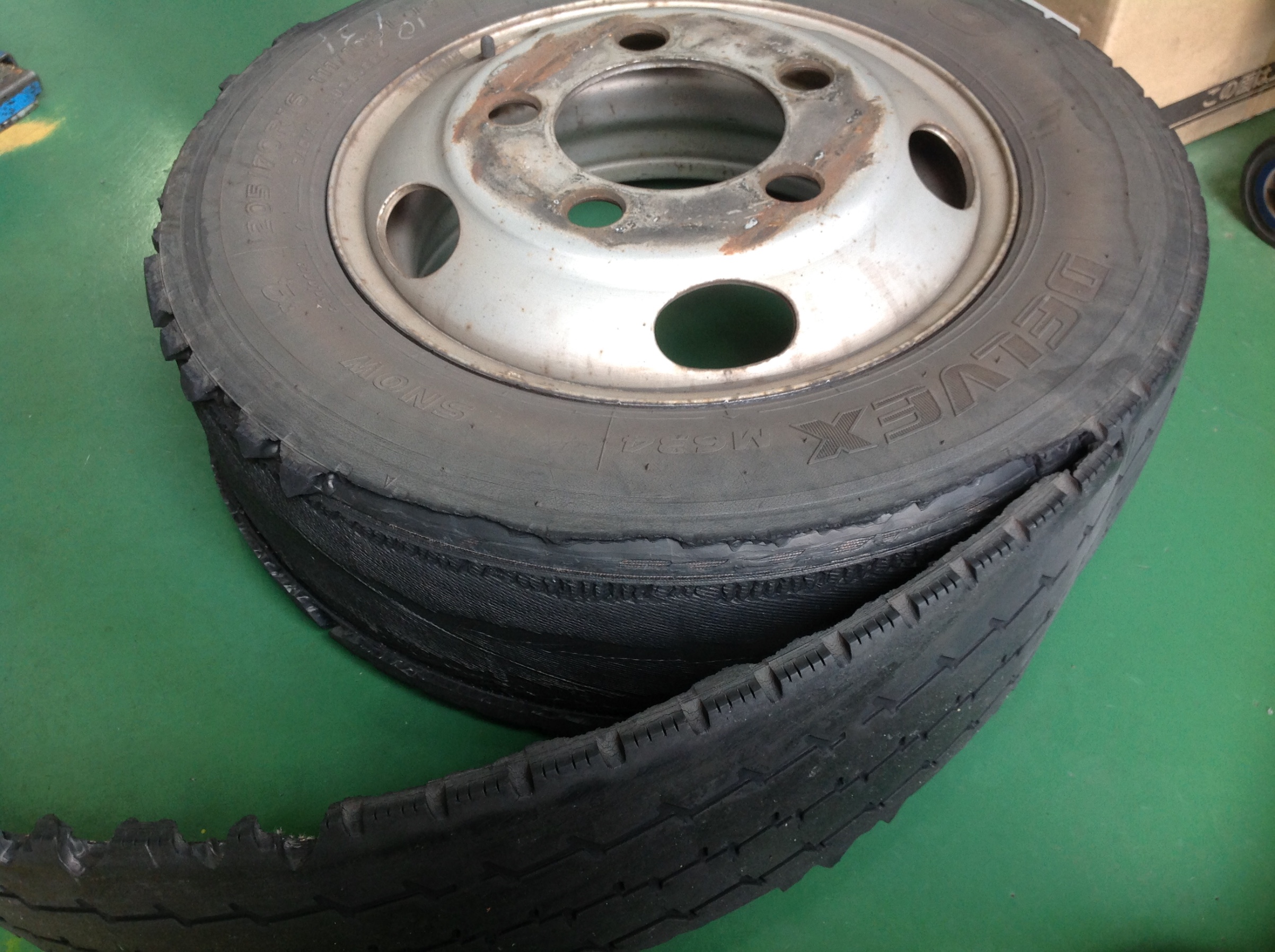 タイヤ無料点検実施中です〜 ポスト 2019年6月11日 写真のタイヤはトラック用になります。 過走行、空気圧不足などが原因です。 トラックだけでなく普通車も同じ事がおきます。 定期的なタイヤの点検をお勧めいたします。 当店では 空気圧、タイヤのキズ、残り溝など無料点検をしております。 是非お立ち寄りください。。。 タグ:タイヤ、点検、空気圧、溝、無料 担当:加藤