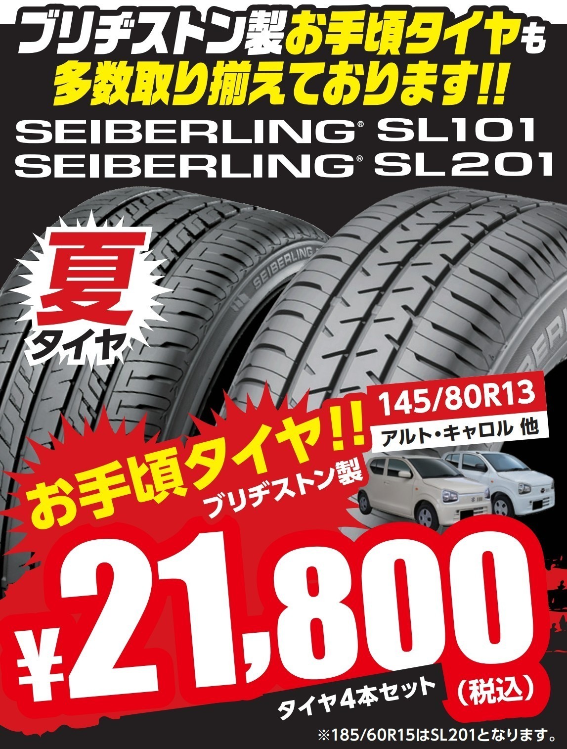 みなさん、こんにちは・こんばんは(*´∀`)ノシ タイヤ館かわごえ店のホームページをご覧いただきありがとうございます(´ ▽ `) 今回はタイヤ館かわごえ店のお買得タイヤのご紹介です(^^♪ BRIDGESTONE製で安心です!! BRIDGESTONE製お買得タイヤSEIBERLING!! 【SEIBERLING(セイバーリング)タイヤ】って...