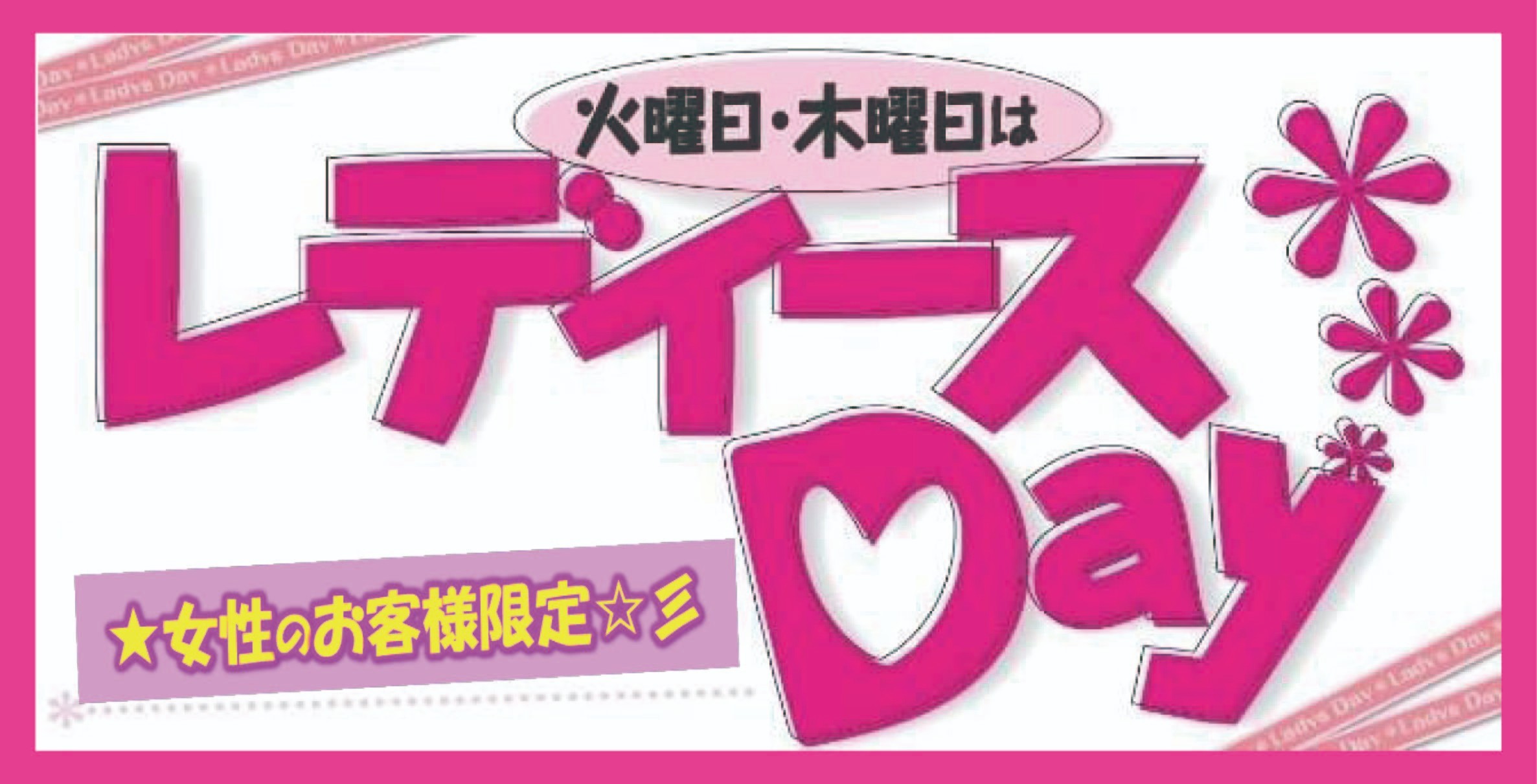 毎週【火曜日・木曜日】にレディースデーを実施しております!!