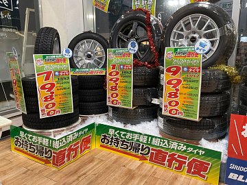 こんにちはタイヤ館かわごえ店てす。 当店では、「スタッドレスタイヤ持ち帰り直行便」 をご用意しています。 ホイールに組み込み済み!バランス調整もOK! サイズが合えば、その場でお持ち帰りできちゃいます。 もちろん、その場でお車への取付もOK!(※取り付け工賃は別途かかります。) スタッドレ...