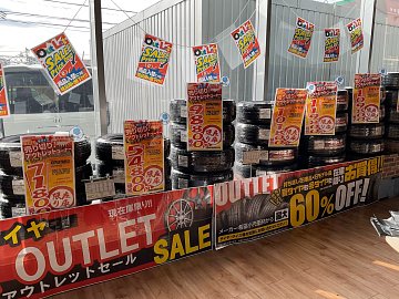 タイヤ館かわごえでは、アウトレットタイヤもご用意がございます。 タイヤサイズがあえばお得にご購入いただけます。 ※数量限定になります。