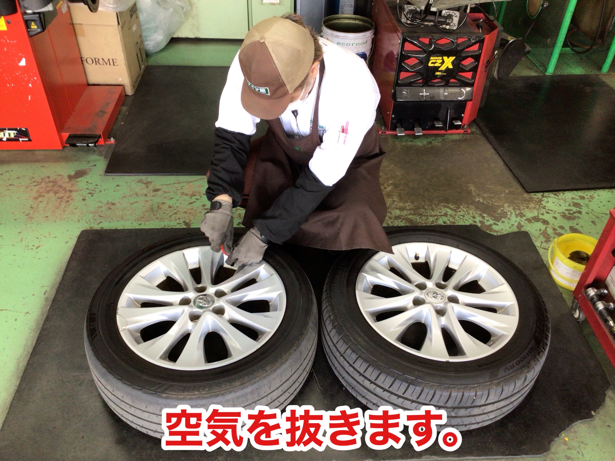 トヨタ エスティマのタイヤ交換作業です