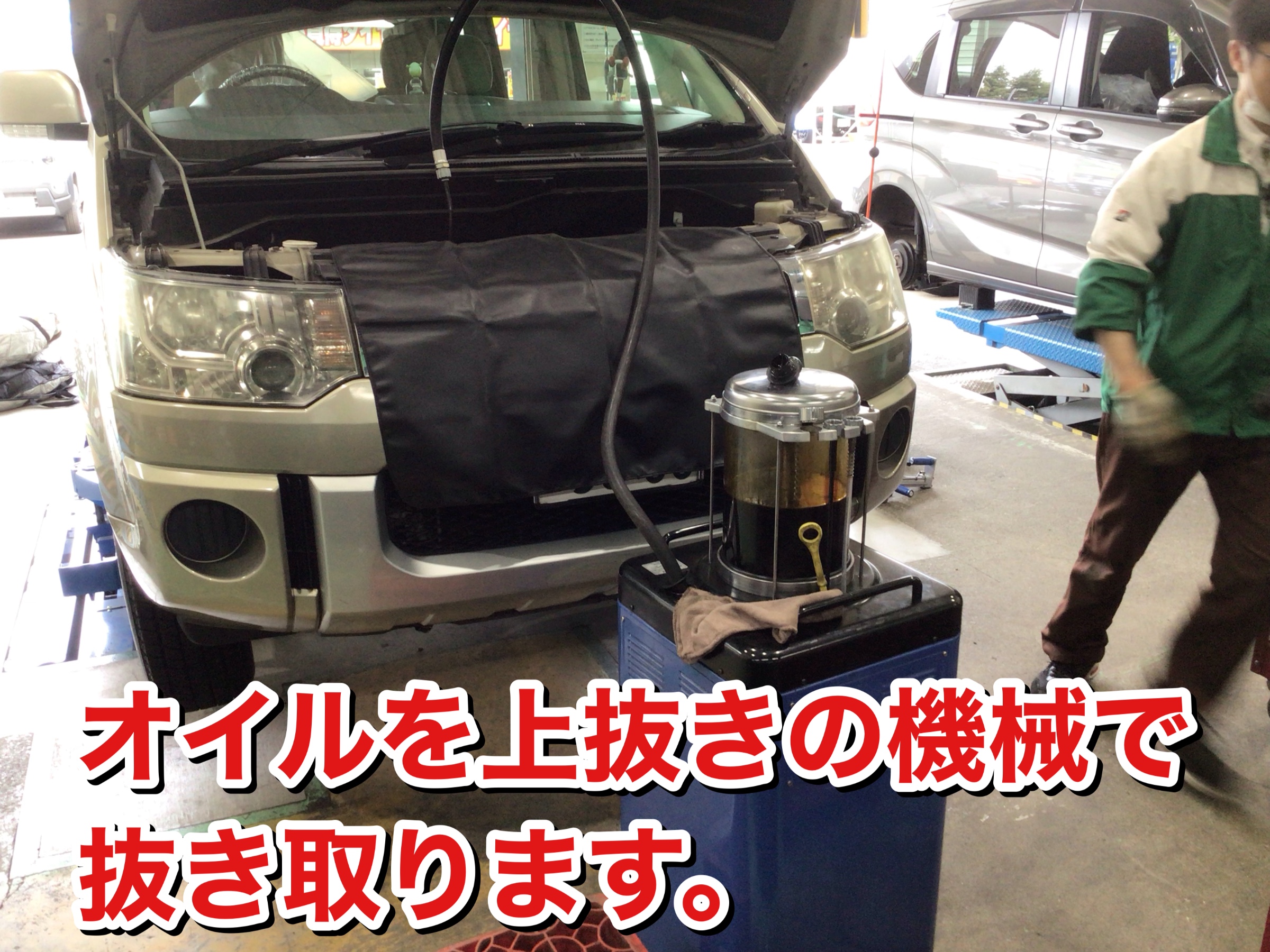 本日は、ミツビシ デリカのエンジンオイル交換作業をご紹介します♪