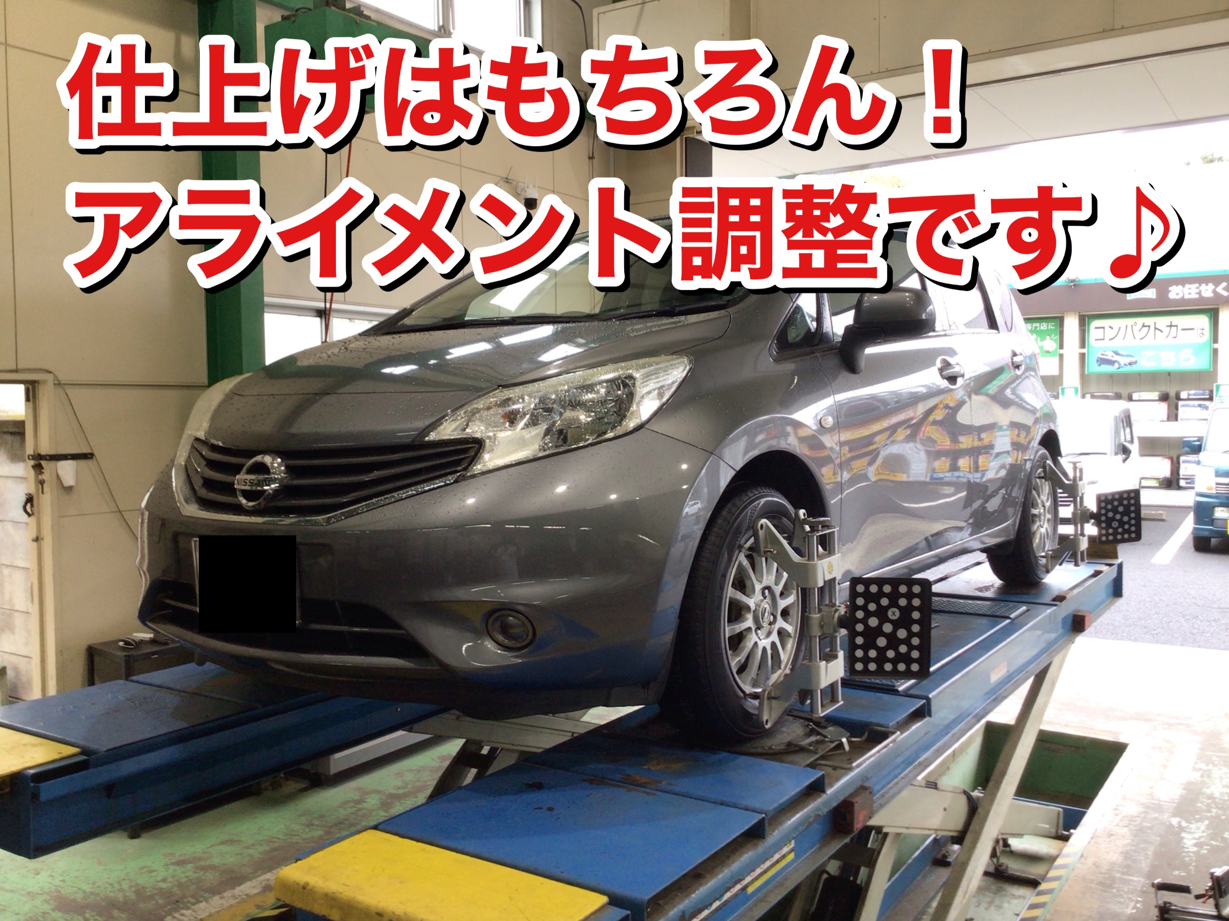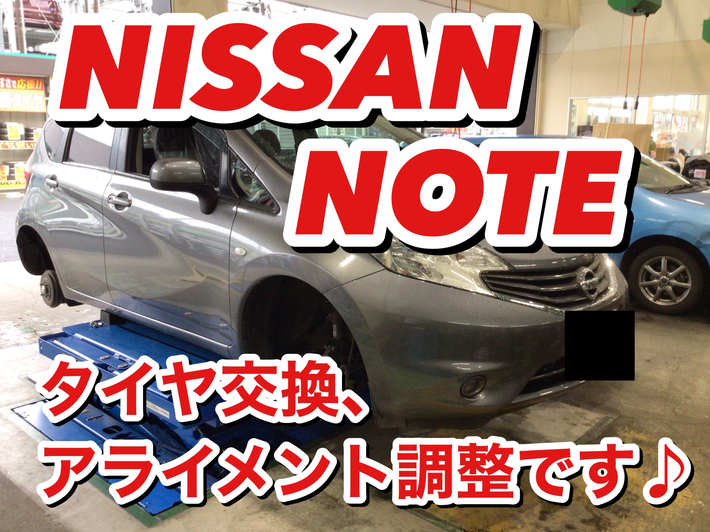 本日は、ニッサン ノートのタイヤ交換・アライメント調整作業をご紹介します♪