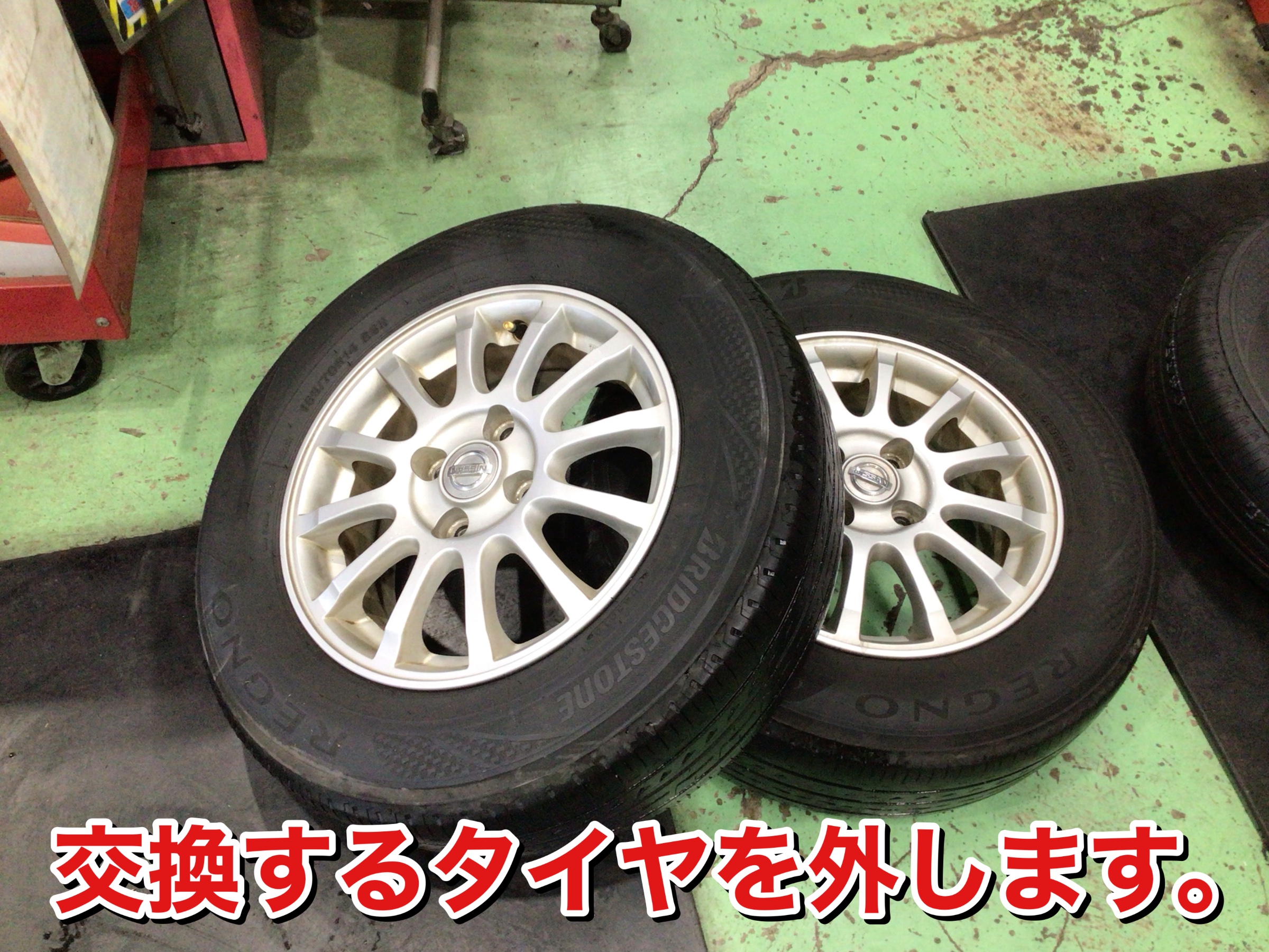 ニッサン ノートのタイヤ交換、アライメント調整です