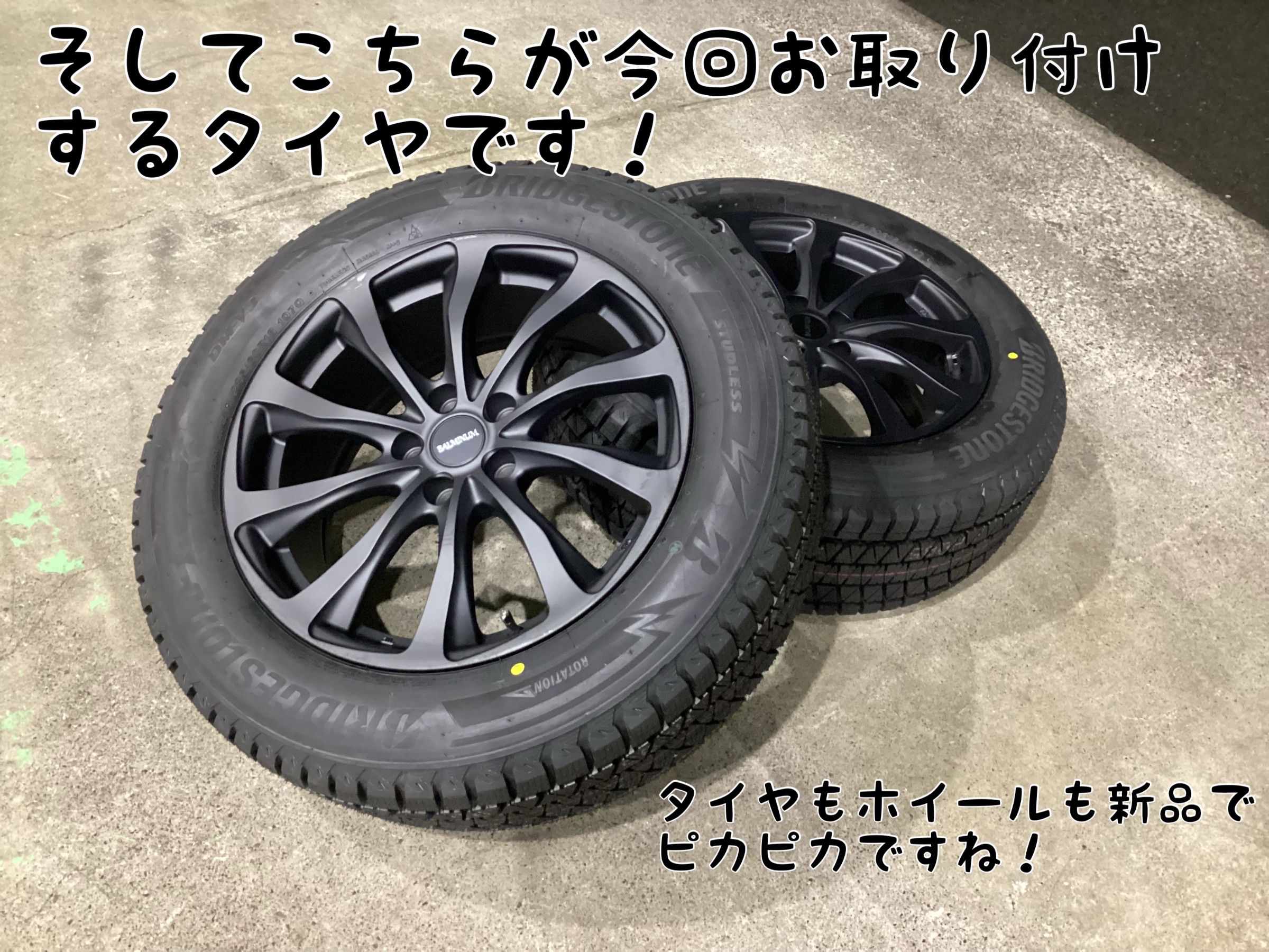 今回ご紹介するのは、夏タイヤ(ノーマルタイヤ)から新品の冬タイヤ(スタッドレスタイヤ)のホイールセットへの履き替え作業です!