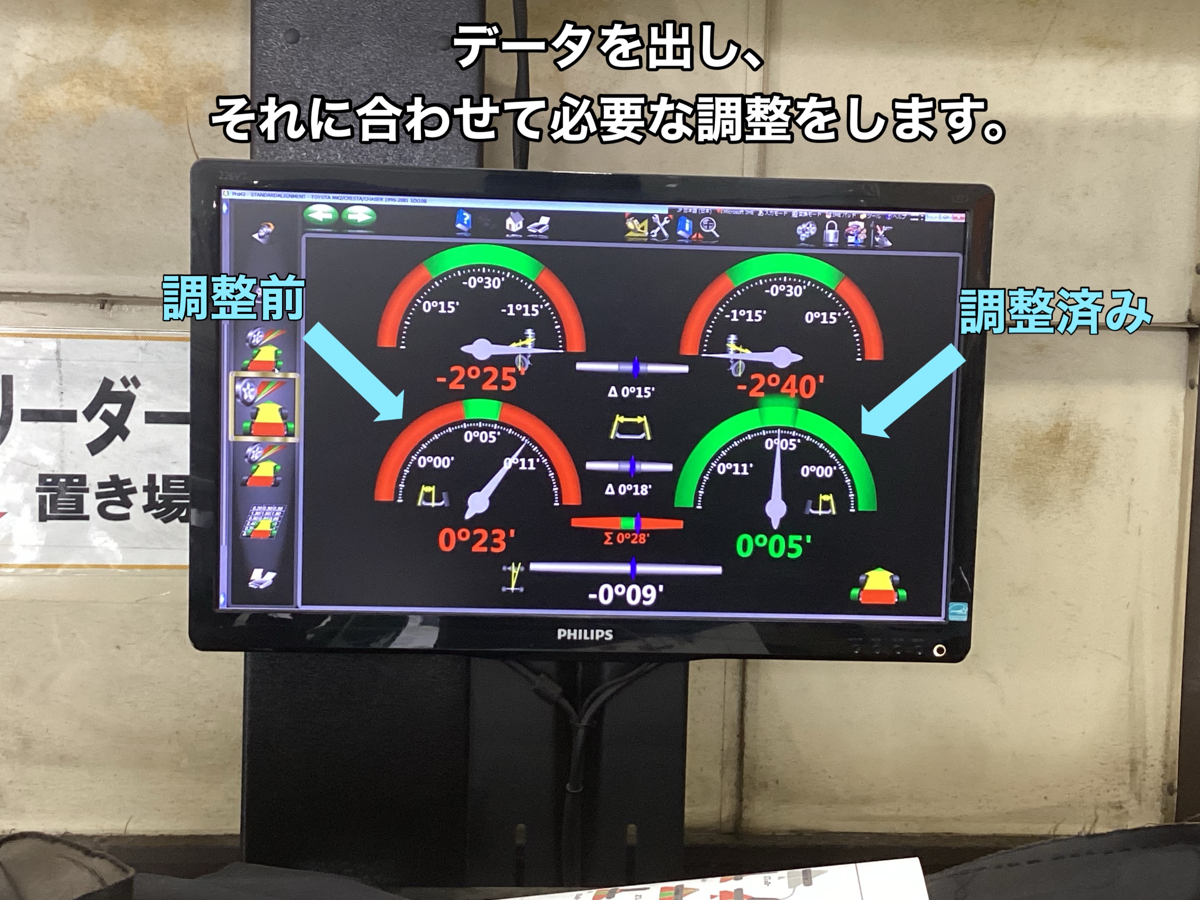 アライメントって何?(トヨタ マークIIアライメント作業)