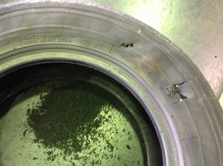 タイヤは側面に穴が開いてしまうと、修理ができません。