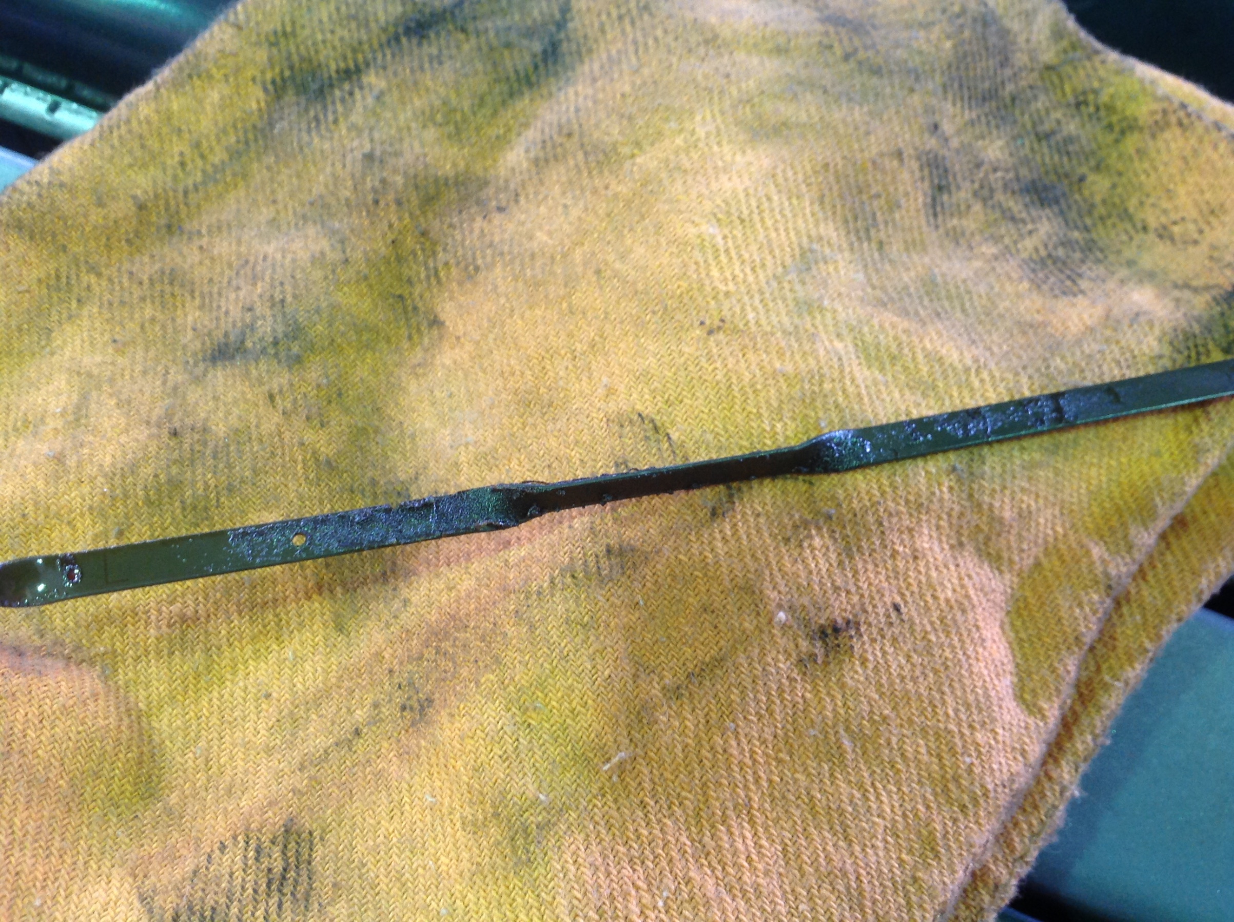 この画像の場合、オイルがかなり減っていてゲージにほとんどついていません。