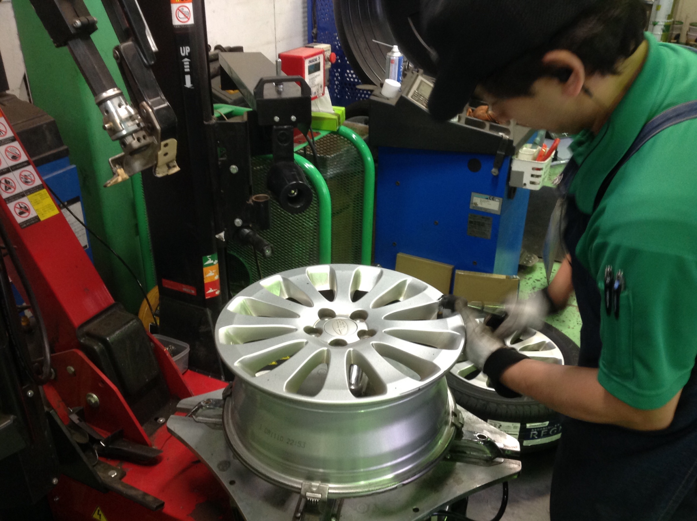 この後ホイールバランスをとり、車に装着となります。