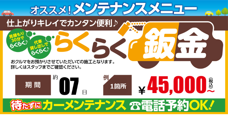 代車の有無も含め、詳しくは詳しくは店舗スタッフまでお気軽にご相談ください。