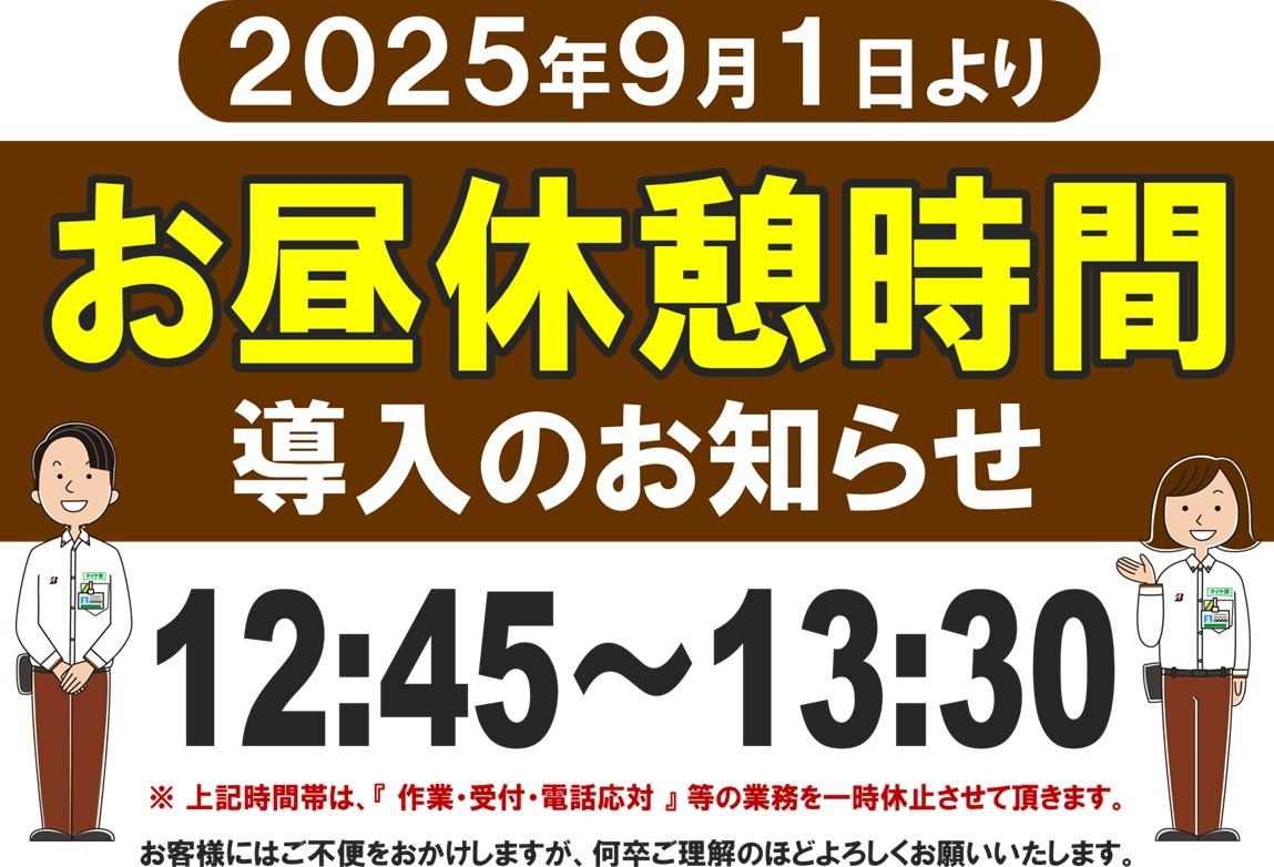 午前の部10:30~12:45迄 午後の部13:30~19:00 12:45~13:30はお昼休憩とさせて頂きます。 作業受付終了18:30までとなります。