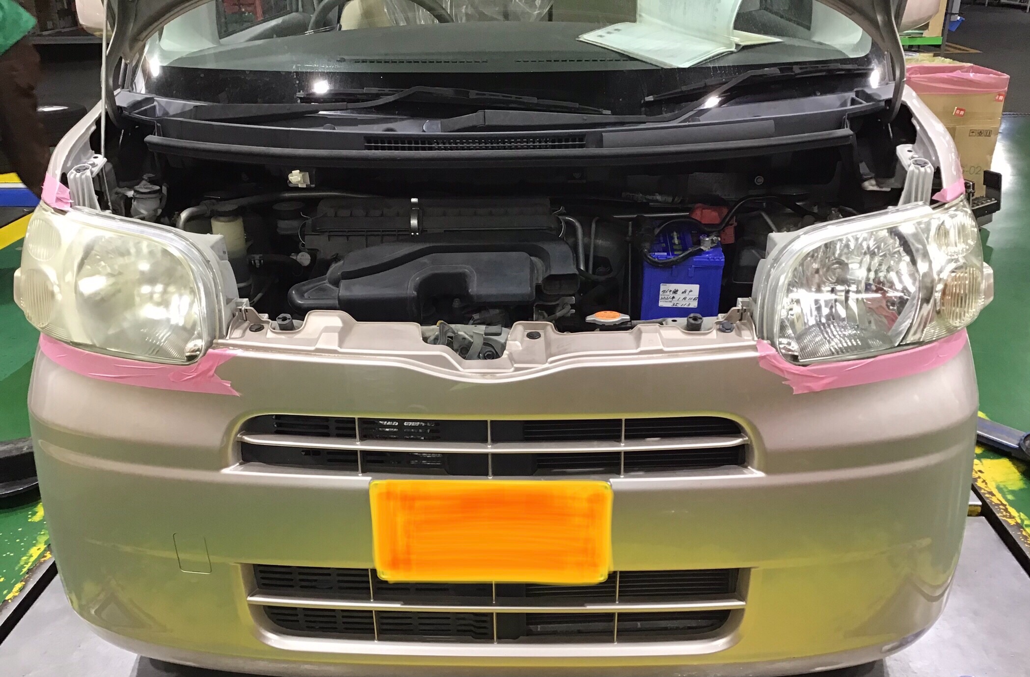 今回、車検でお預かりさせて頂きましたお車もかなり黄ばみが酷い状態で、専用の溶剤で施工させて頂きましたので、違いをご覧ください!