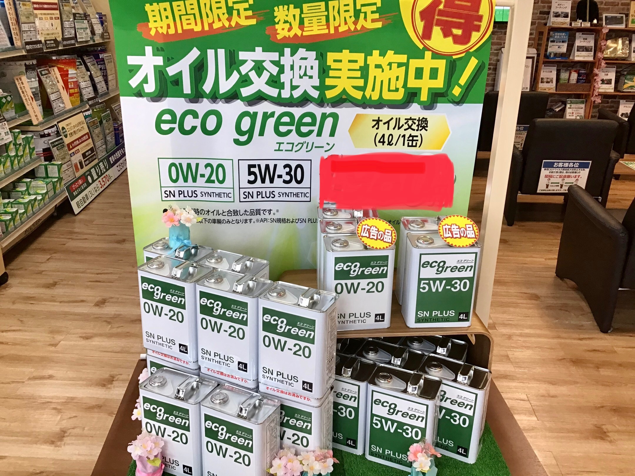 店内にたくさんの気軽にお得にオイル交換出来る商品ご用意