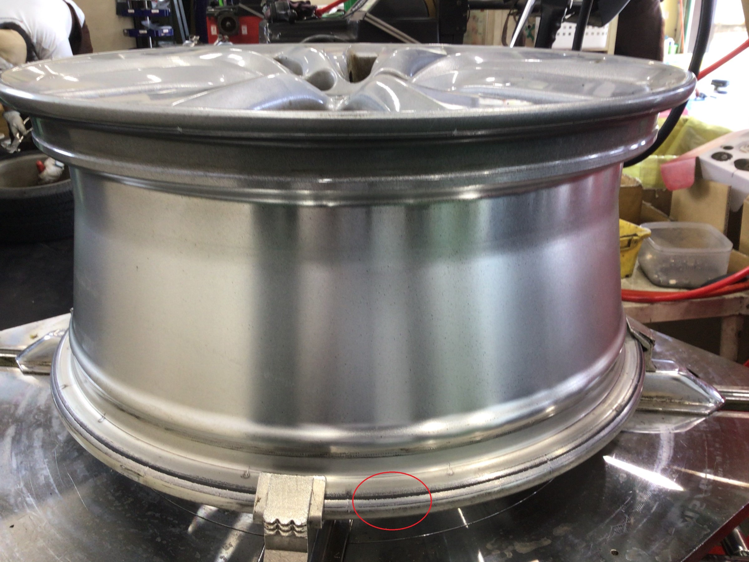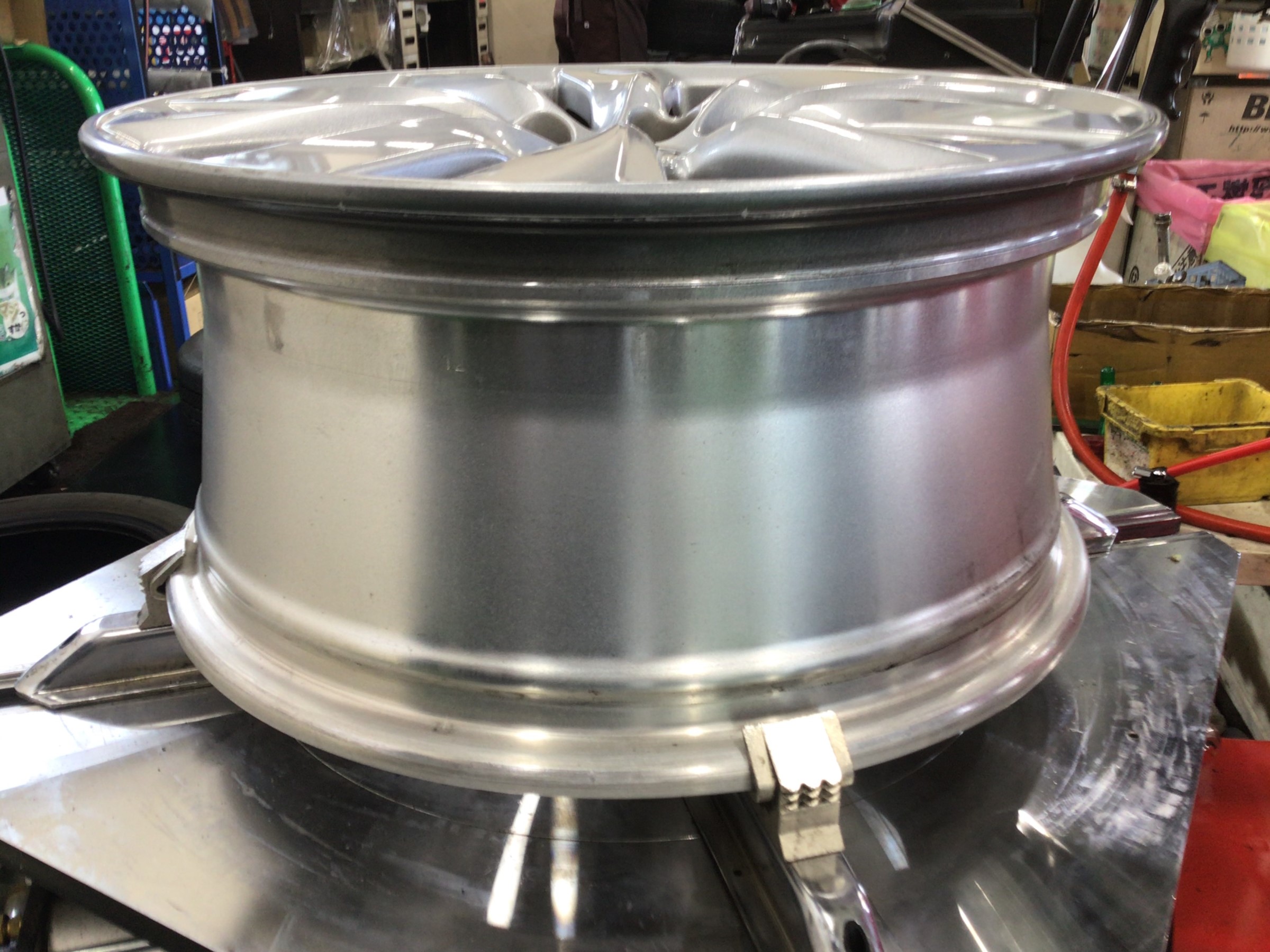 タイヤ館では、しっかりと磨いてタイヤの組み込み