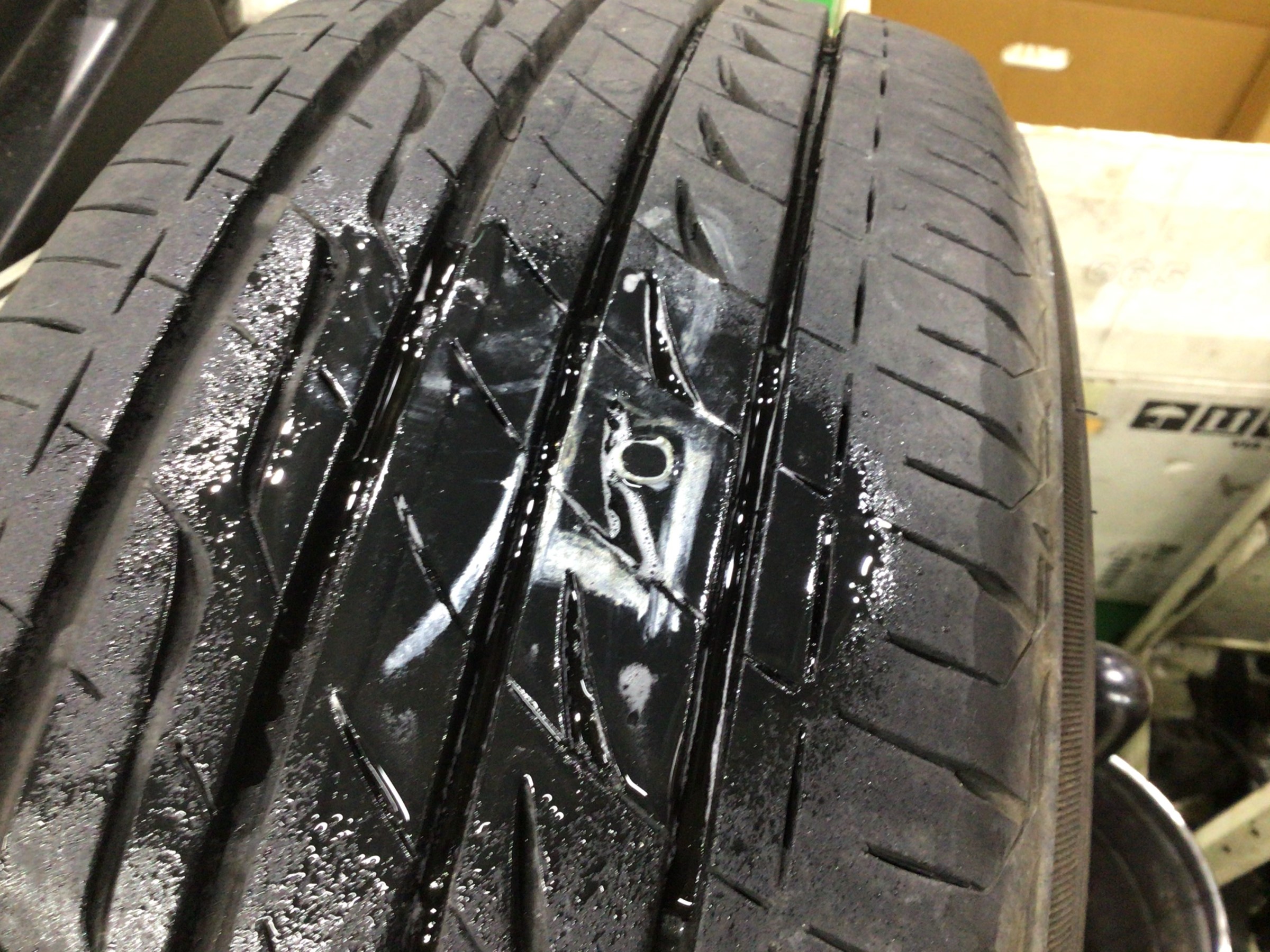 しっかりと中からパッチと心棒付きのパンク修理を行い