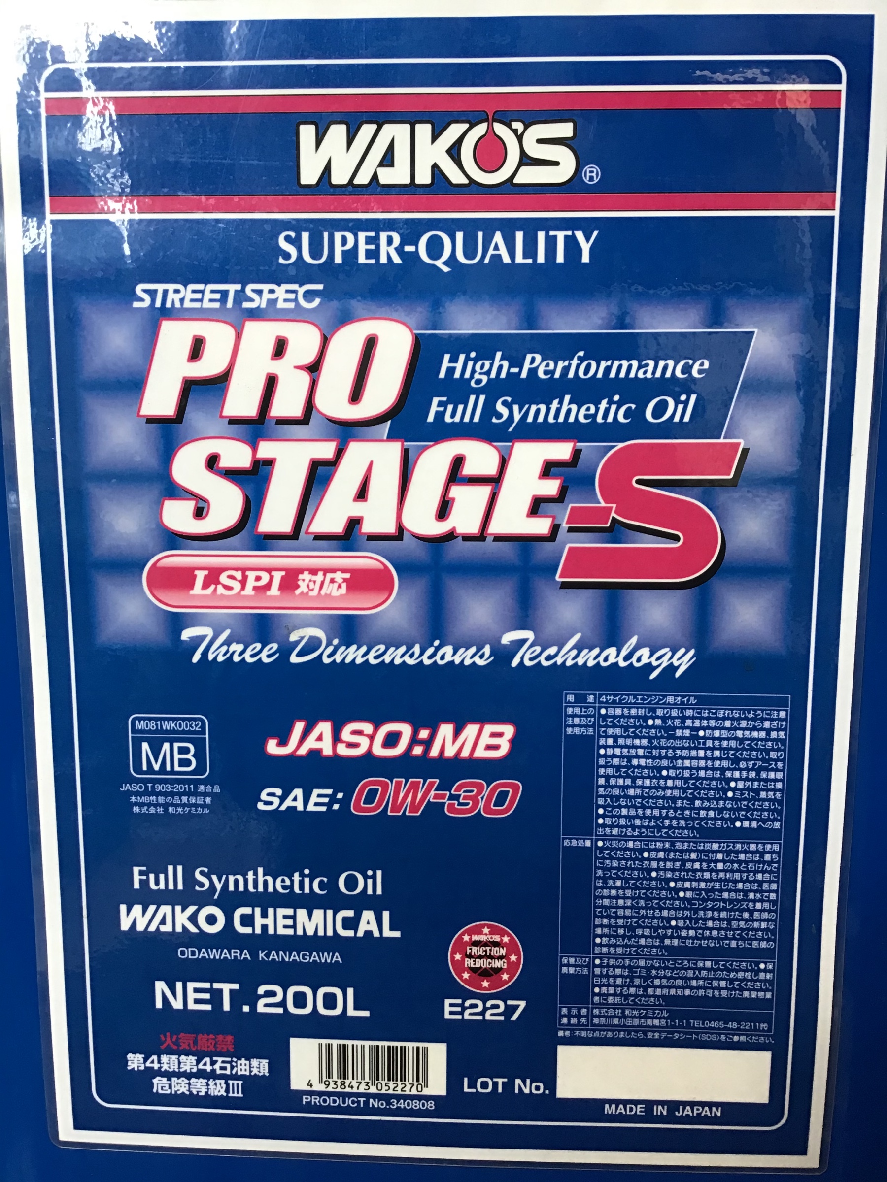 使用のオイルはWAKO'Sのプロステージです!