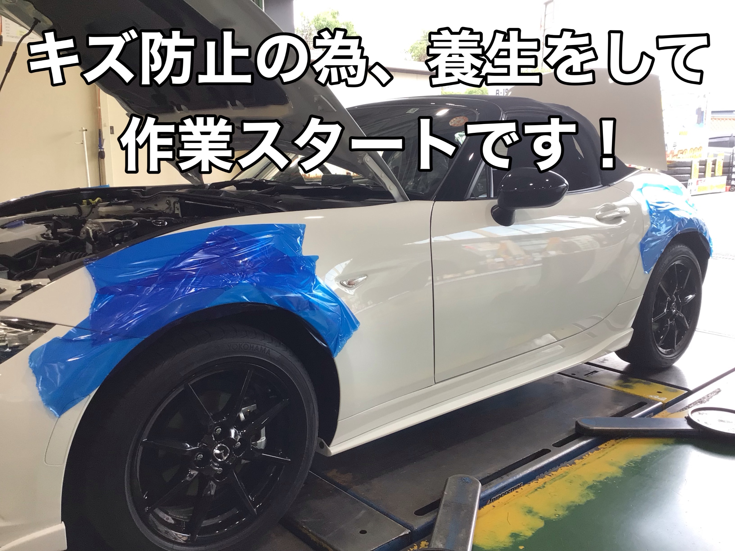 そして各部に車両の養生を済ませ