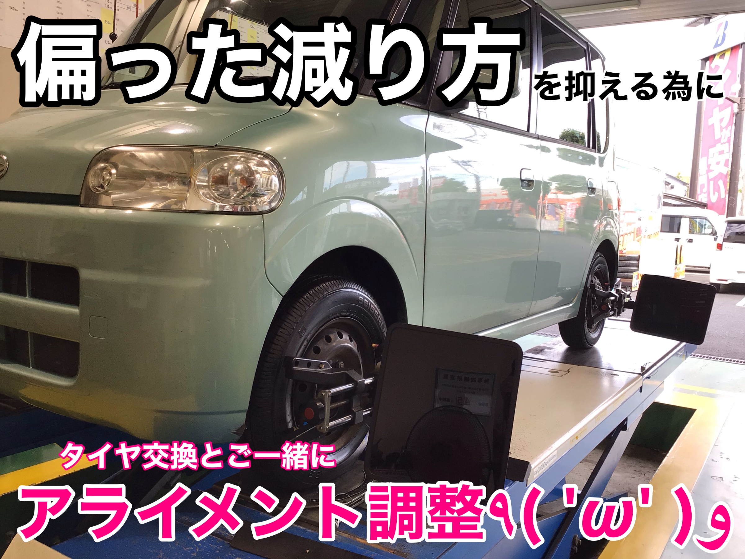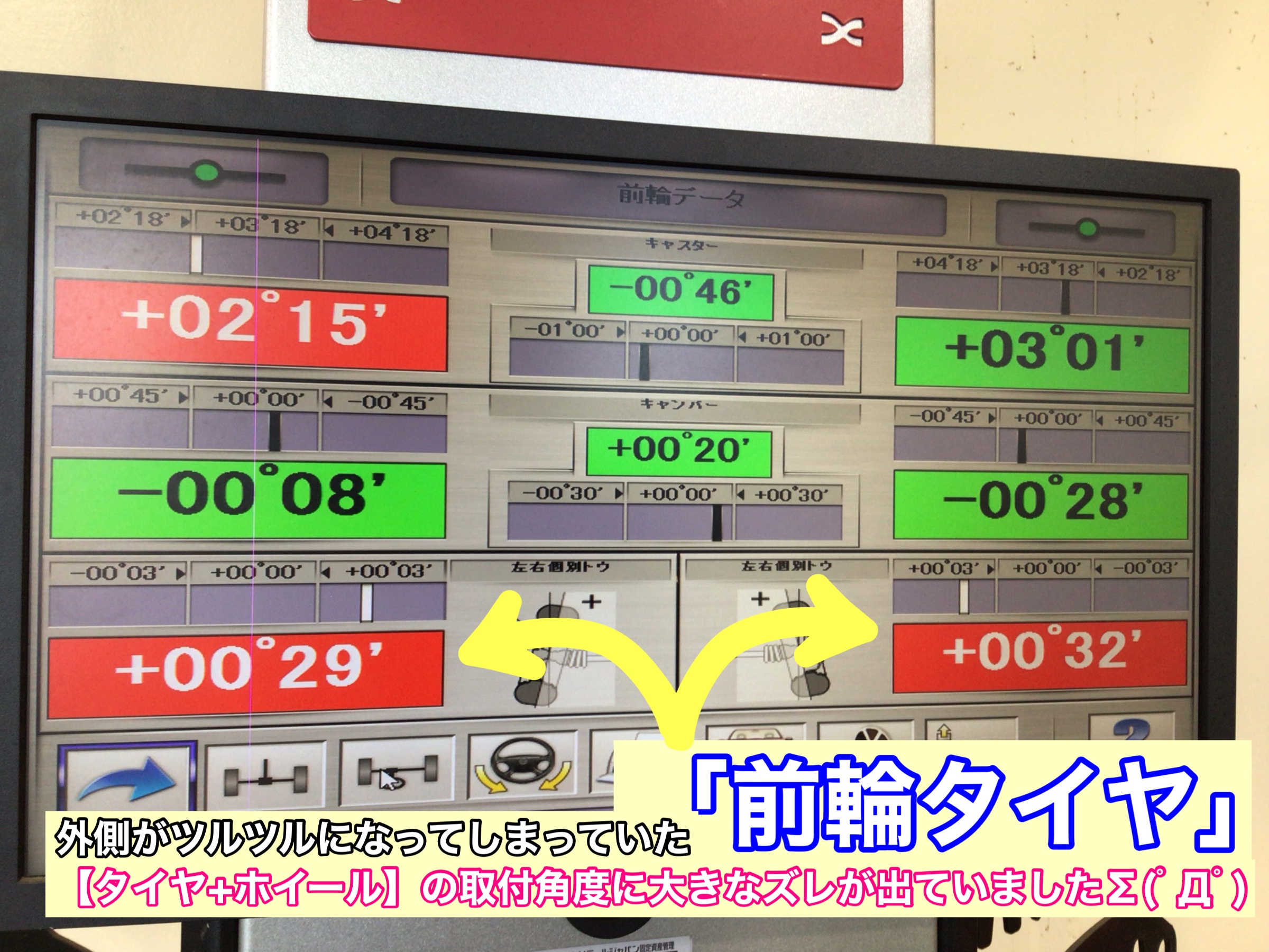 新しいタイヤへと交換をさせて頂いたうえでタイヤの取付角度【アライメント】の