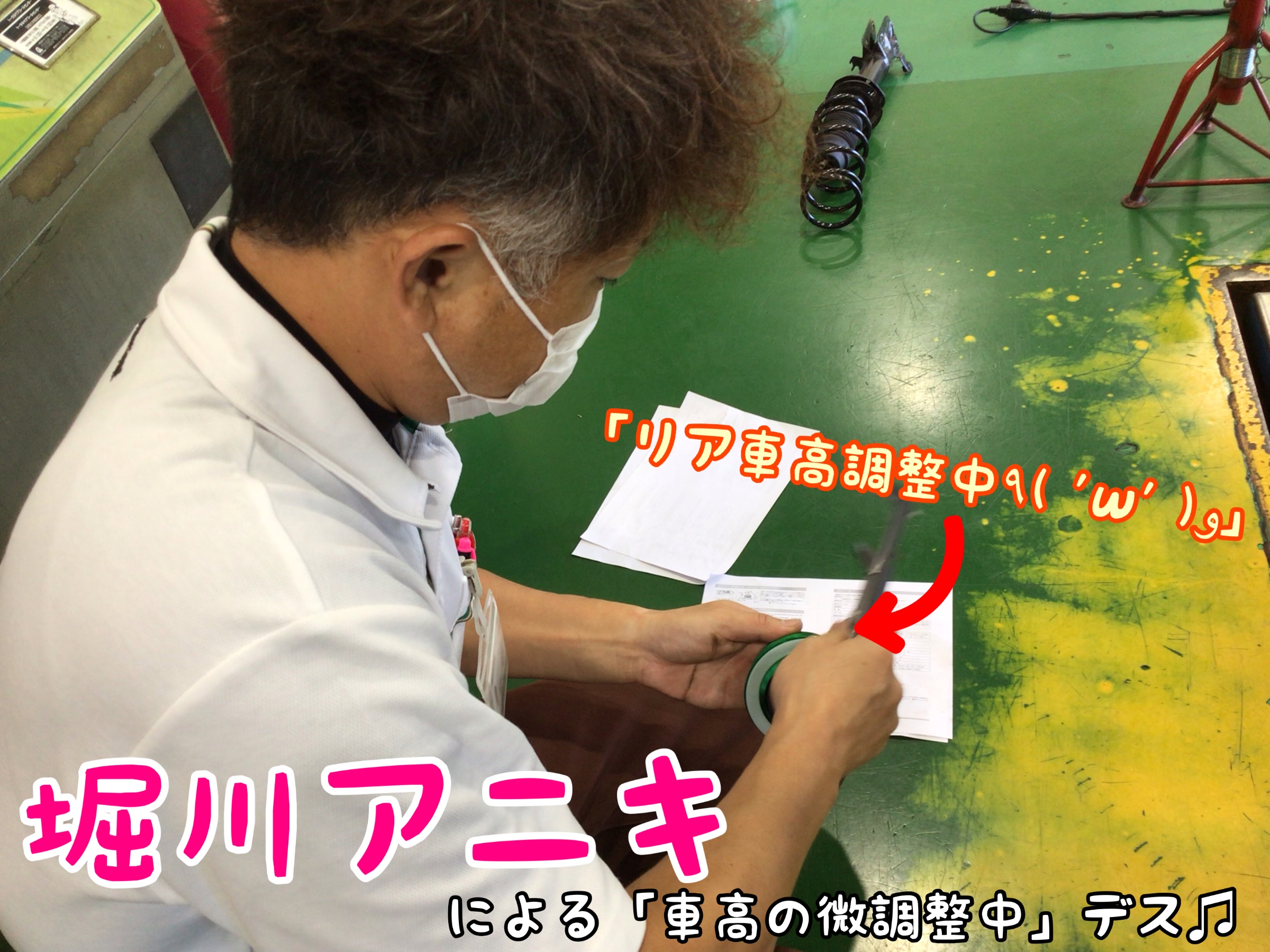 車高を調整しまぁーす‼︎ という事で細かな調整は「アニキにお任せで( ̄^ ̄)ゞ」