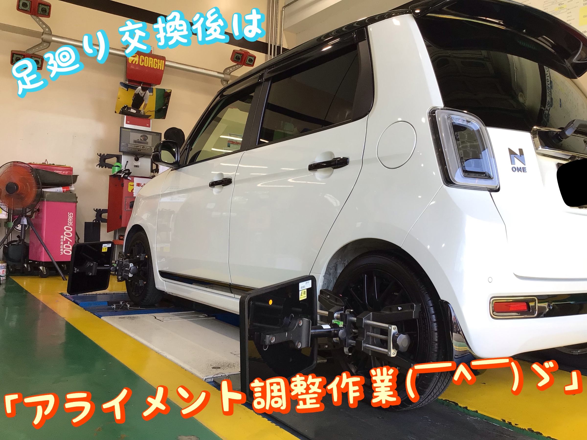 「タイヤの取付角度調整【アライメント調整】」を行なって正しい向きに٩( 'ω' )و