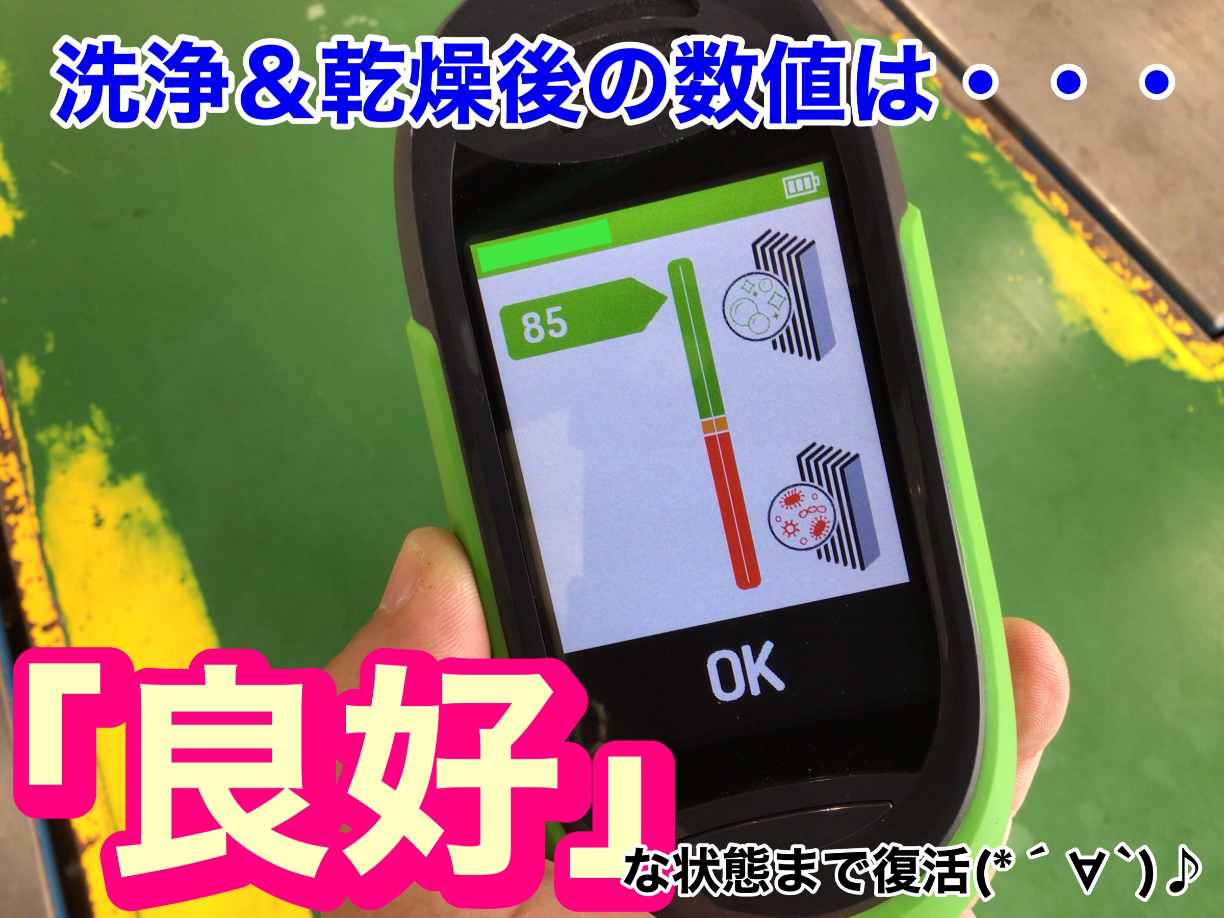 気になる数値を「再度測定」してみると…かなりキレイになった様デスね(*´∀`*)