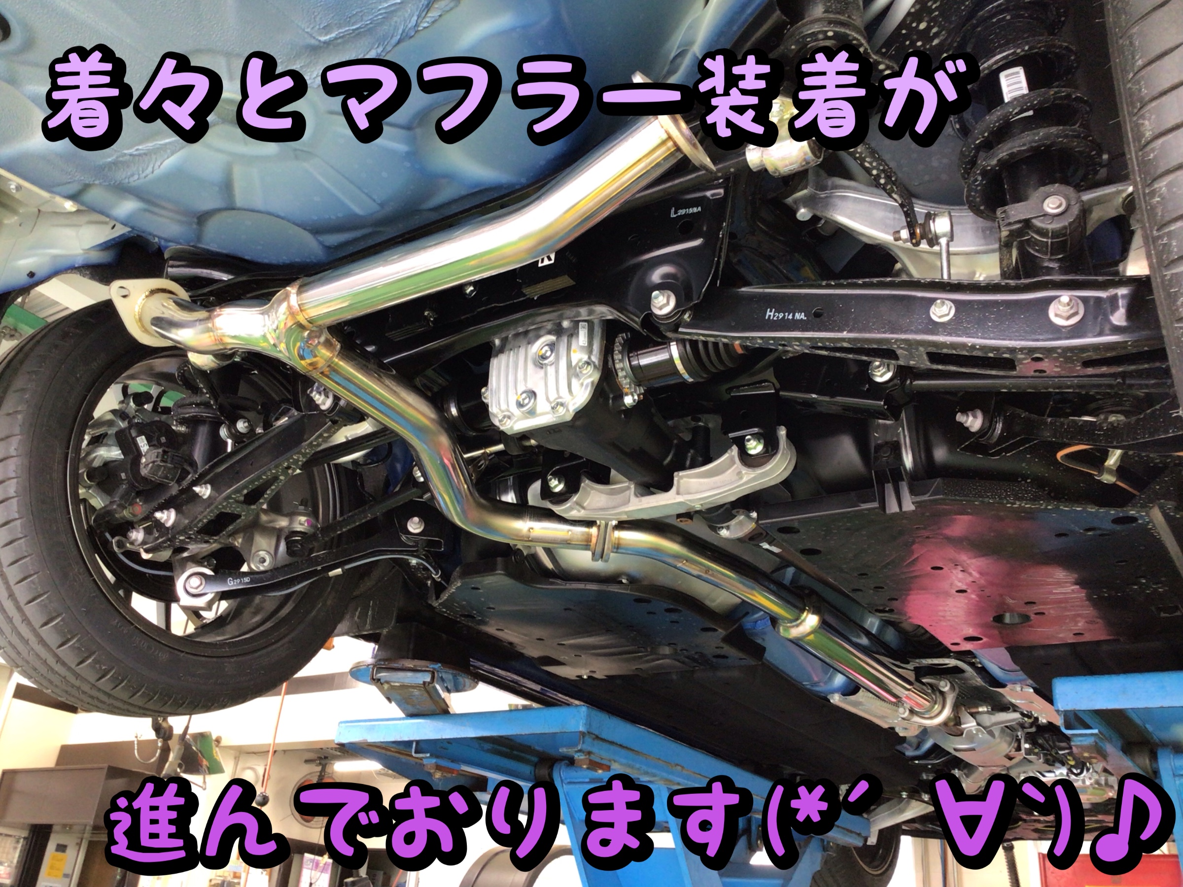 お車の納車前よりご相談を頂いておりました【マフラー交換】作業デス(๑╹◡╹)ノ"