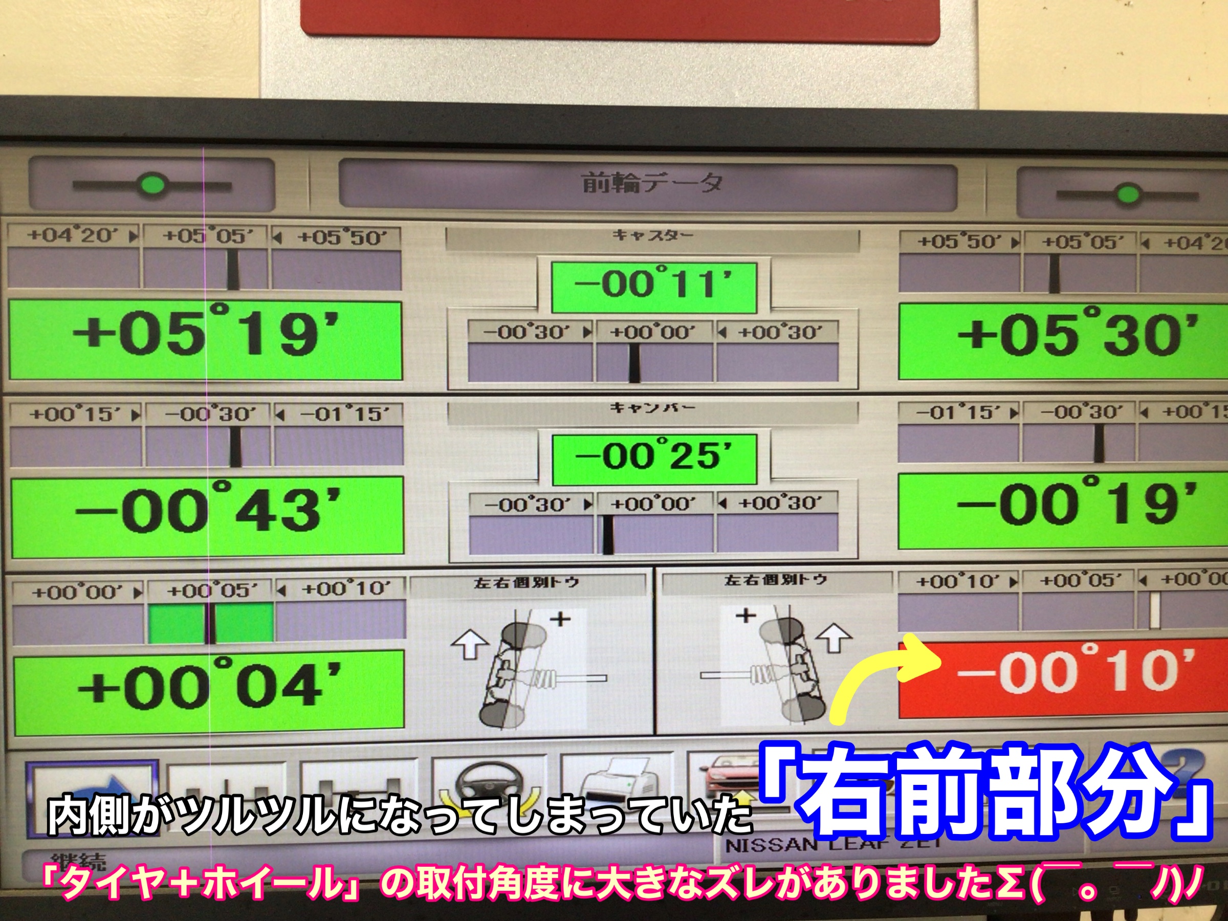 日産:リーフ アライメント調整でタイヤ長持ち(^O^)/