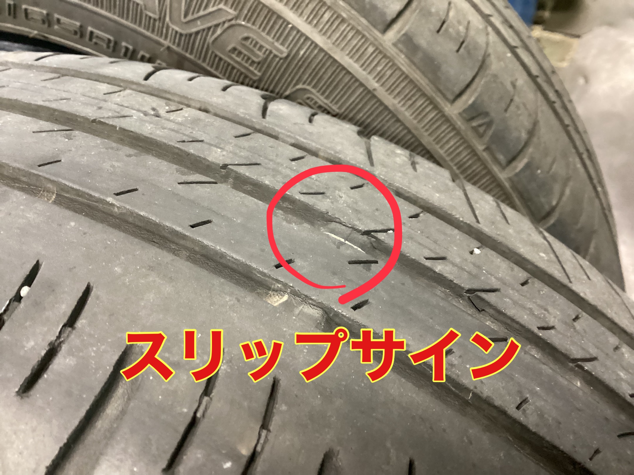 今回の交換理由は、溝が減りスリップサインが出てきた為交換になりました。
