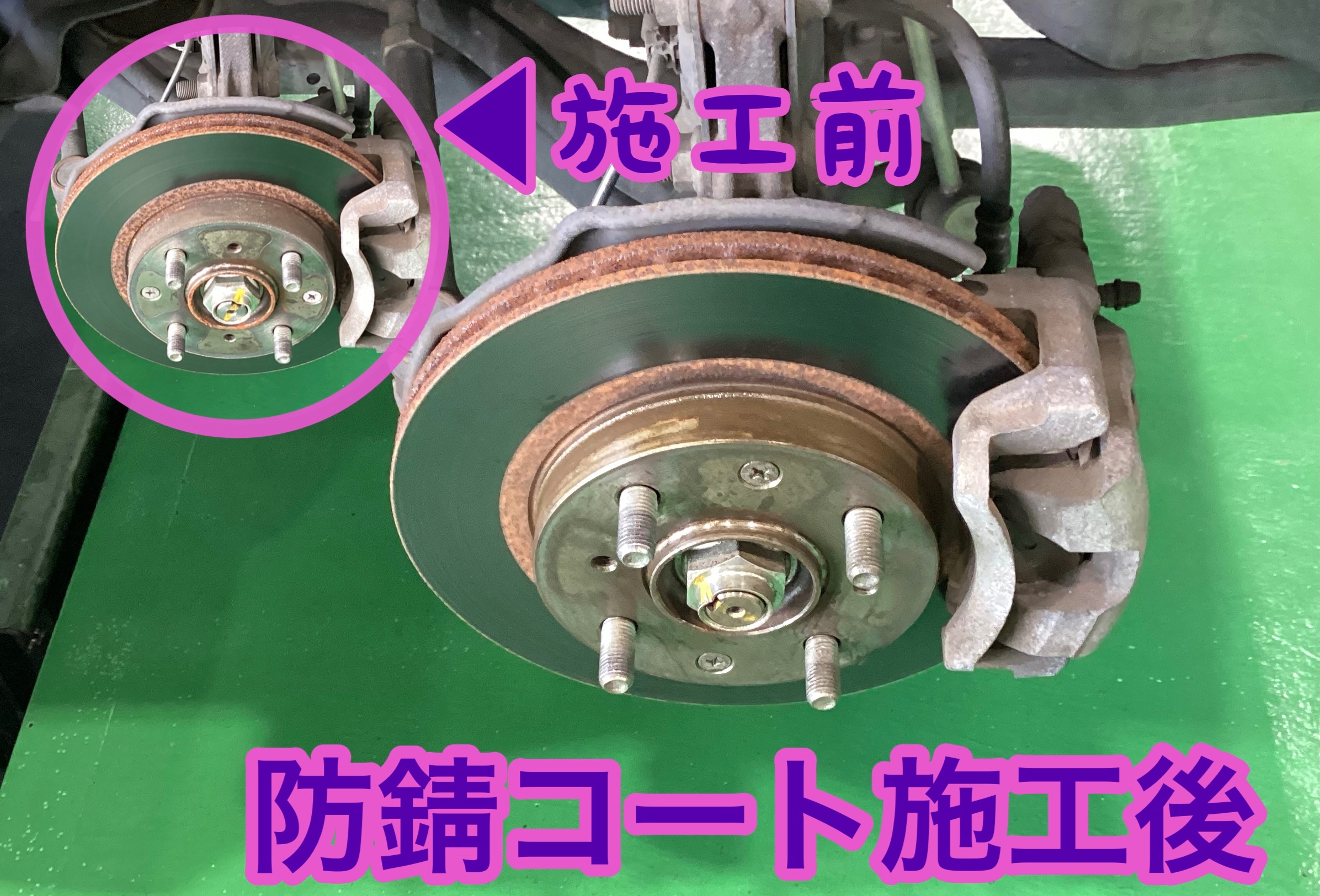 タイヤを外しての作業になるため、