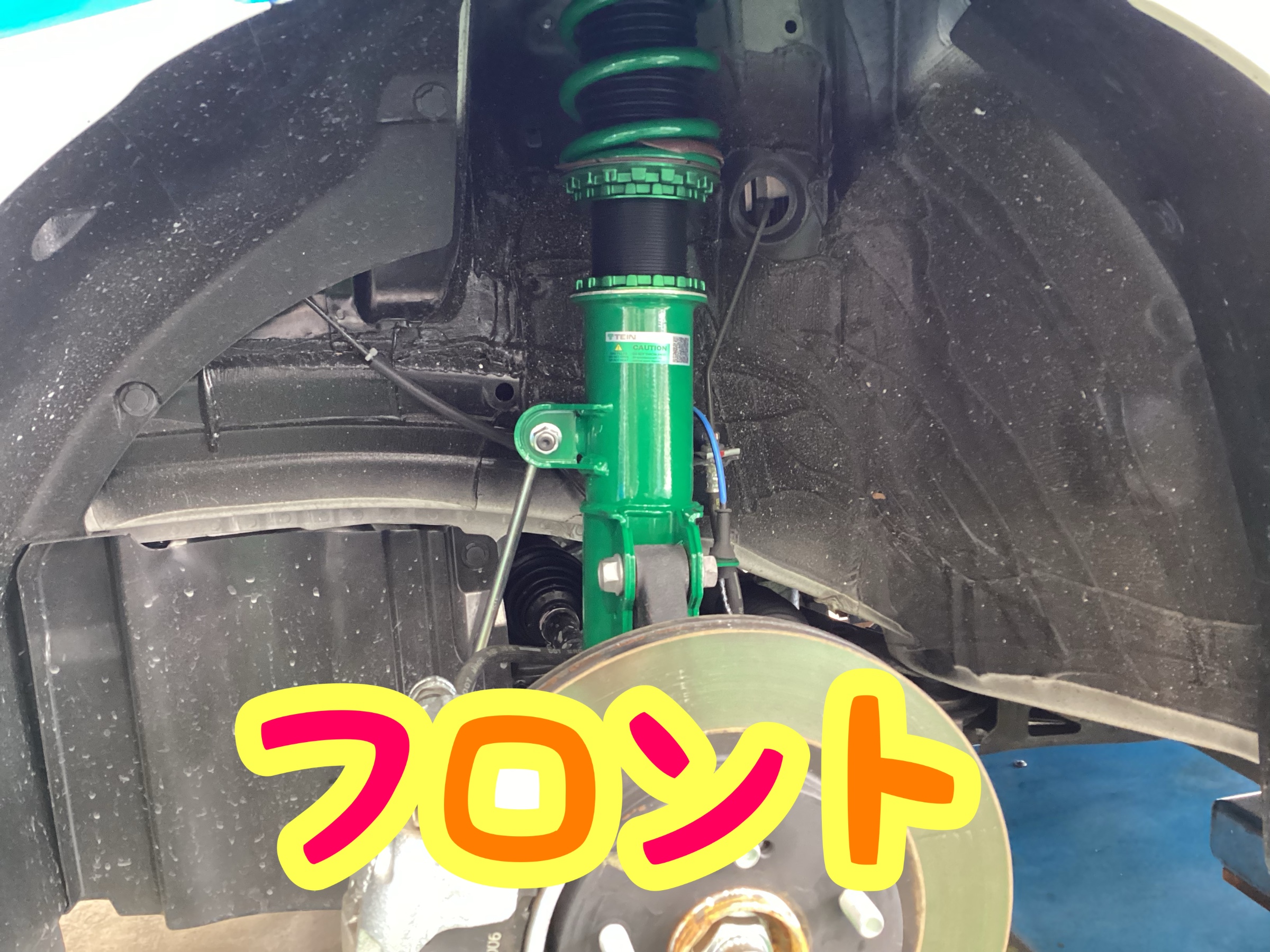 純正の足回りは黒なので、テインのブランドカラーであるグリーンが映えますね‼︎